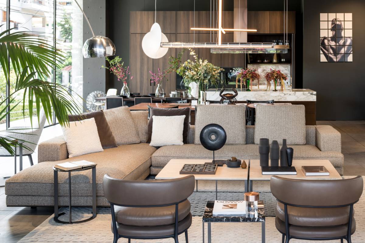 More than 400 people, including distinguished professionals in the industry, people from the arts, business and media representatives, enthusiastically responded to the call of Deloudis family, which has remained a leader in the design industry since 1972. In the state-of-the-art two-level showroom at 358 Kifisias Avenue in Chalandri, totaling 580 m2, guests enjoyed a highly impressive display of B&B Italia’s most iconic designs, including the Le Bambole collection, the Serie Up armchair and sofa system Camaleonda. In addition, visitors had the opportunity to browse the collections of B&B Italia, Maxalto, Arclinea kitchens, Azucena, as well as the lighting collections of Flos and Louis Poulsen, discovering the latest innovations in the field of design.