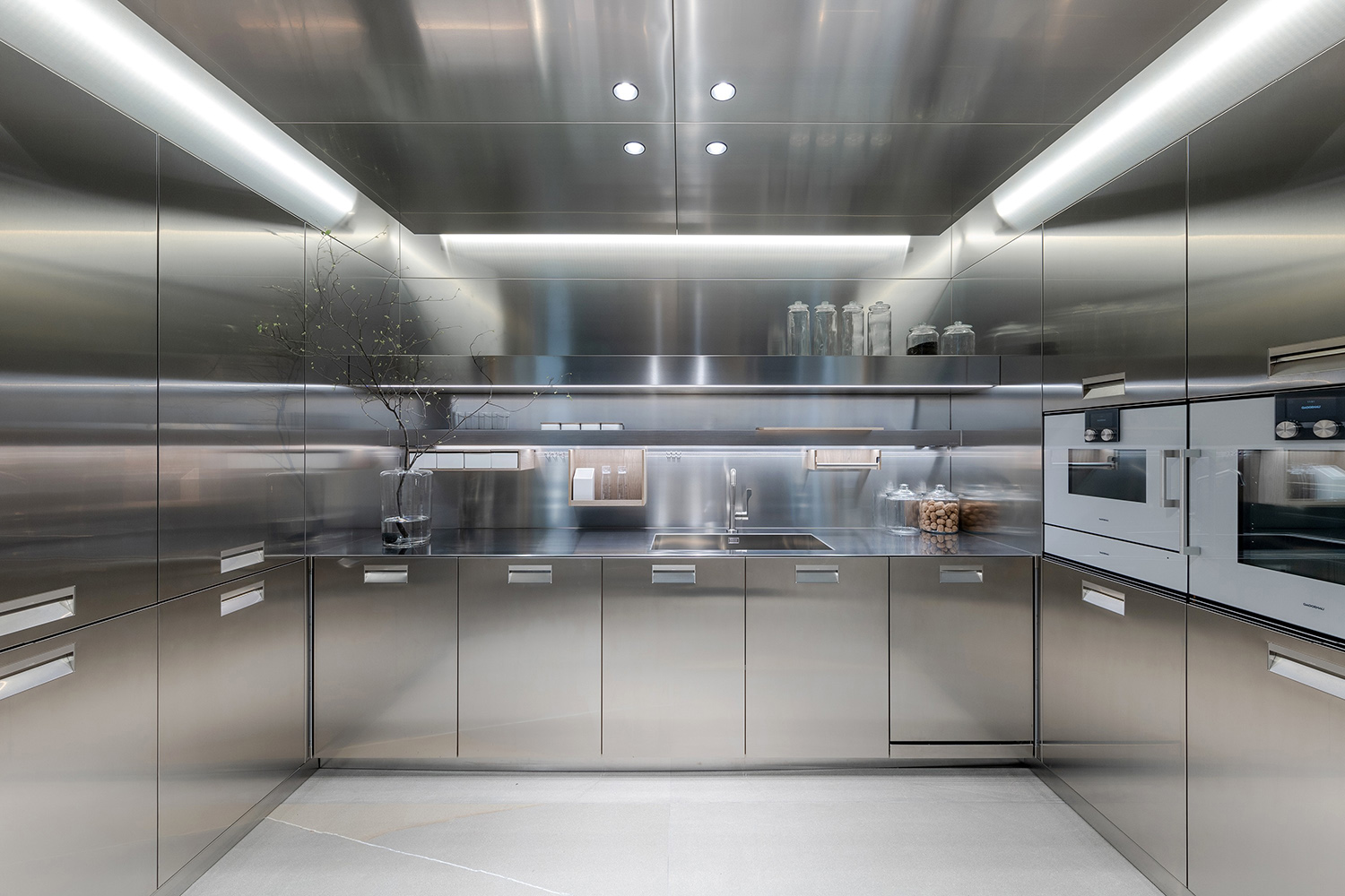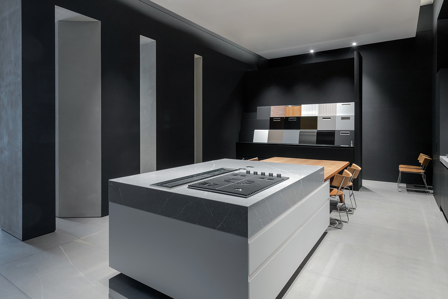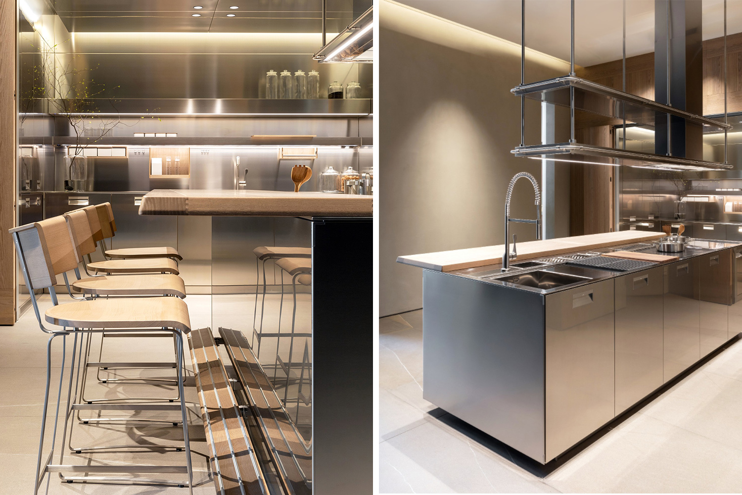 Set up in 2020, the Arclinea Flagship Store in Gangnam-gu, Seoul, has been fully operative since the start of 2021. In almost 150 m² it houses three important Arclinea projects, real kitchens that gain even more significance from their showrooms, marked out by big-appeal architectural modules, starting with the store windows.