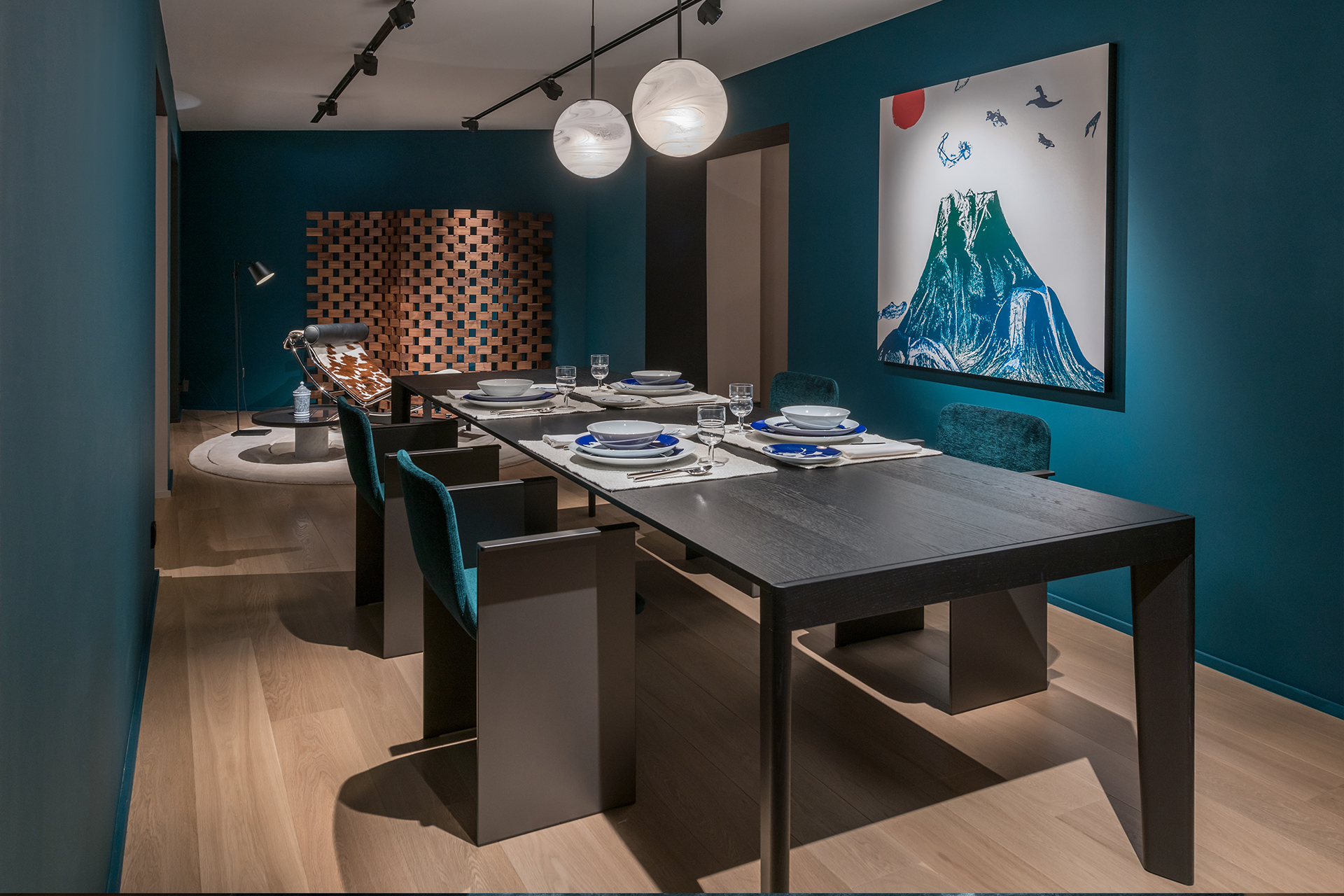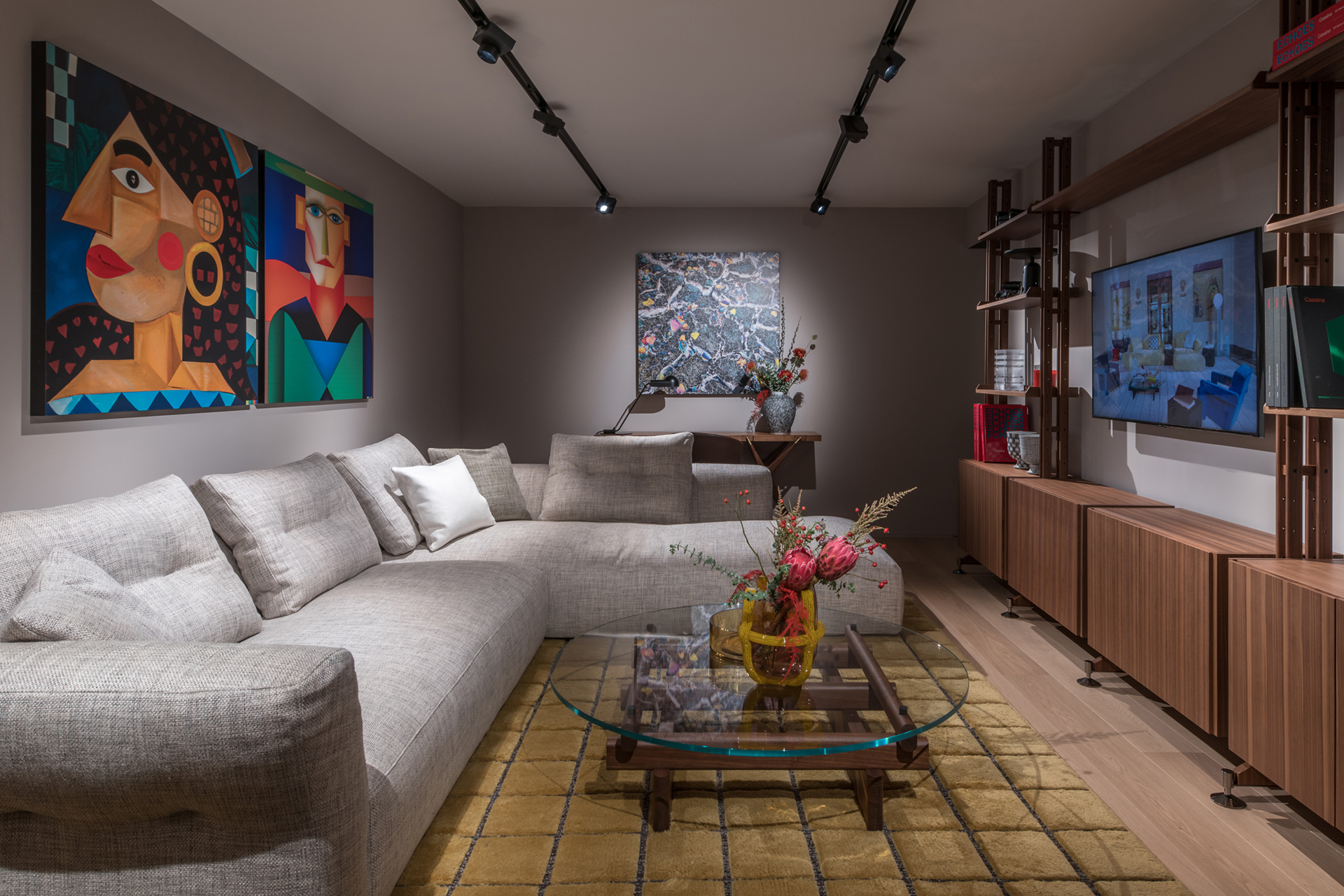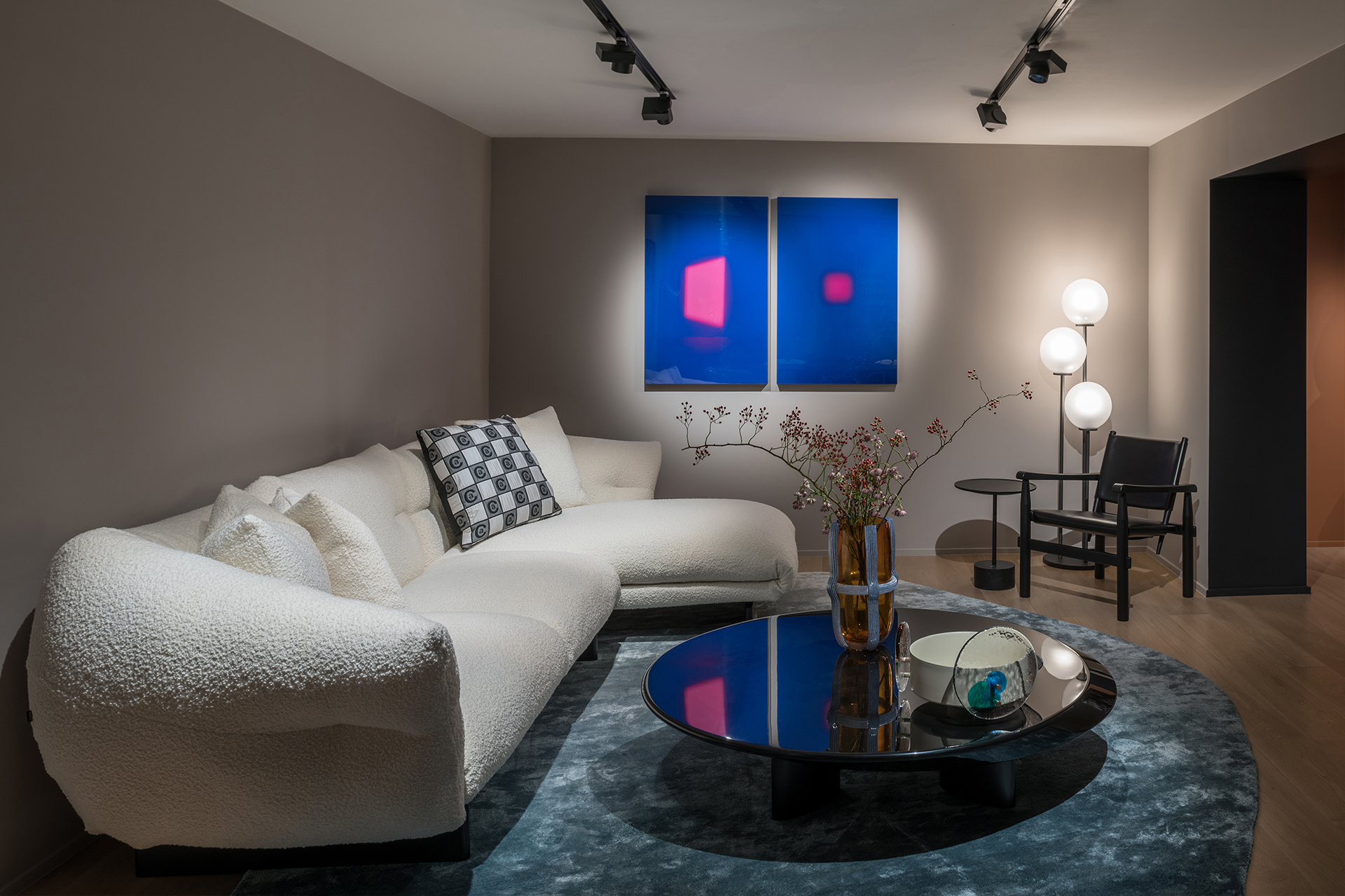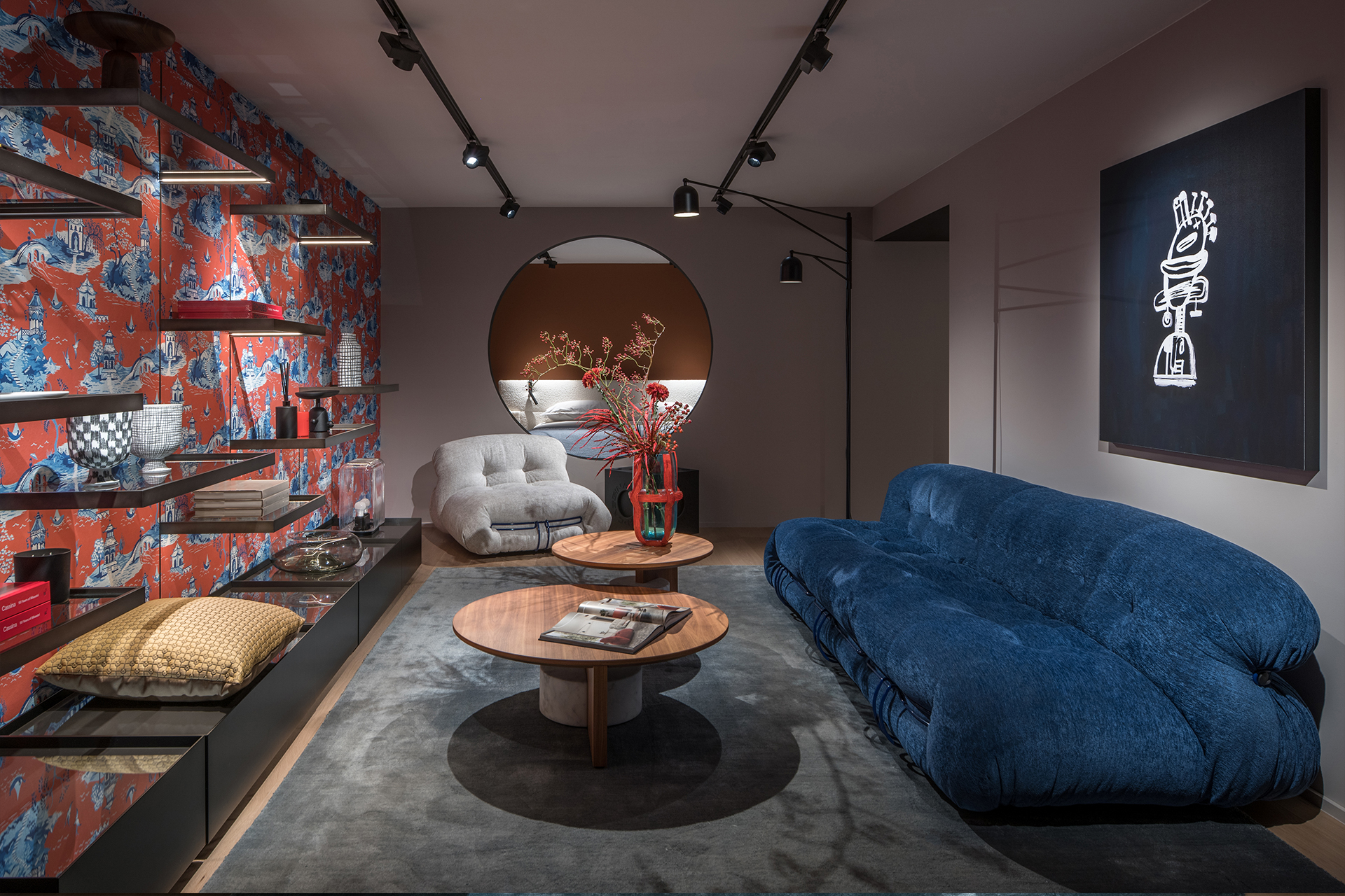 Developed on three levels for a total area of over 300m2, the interiors of the store highlight Cassina’s collections in welcoming atmospheres that harmoniously combine twelve decades of design history.