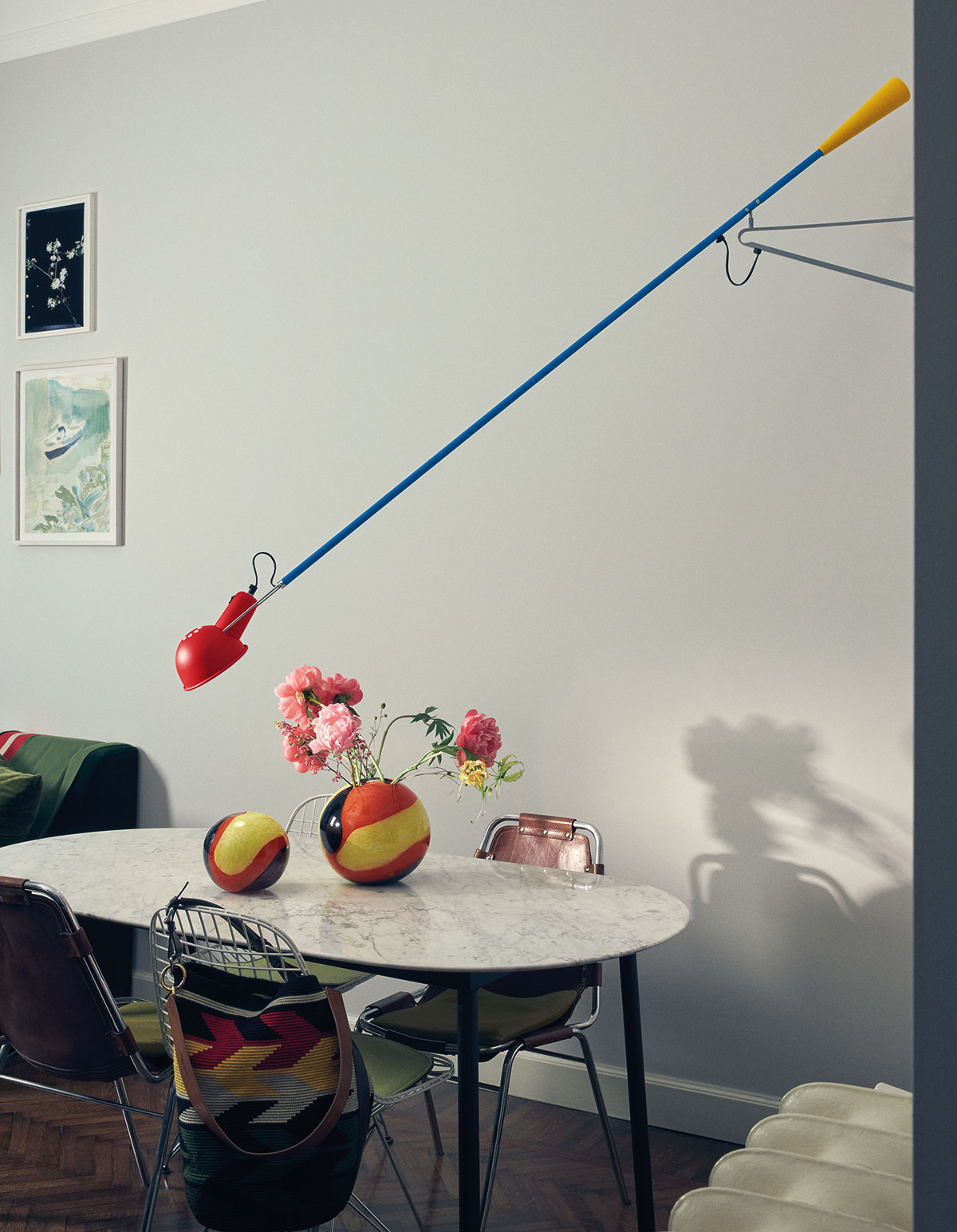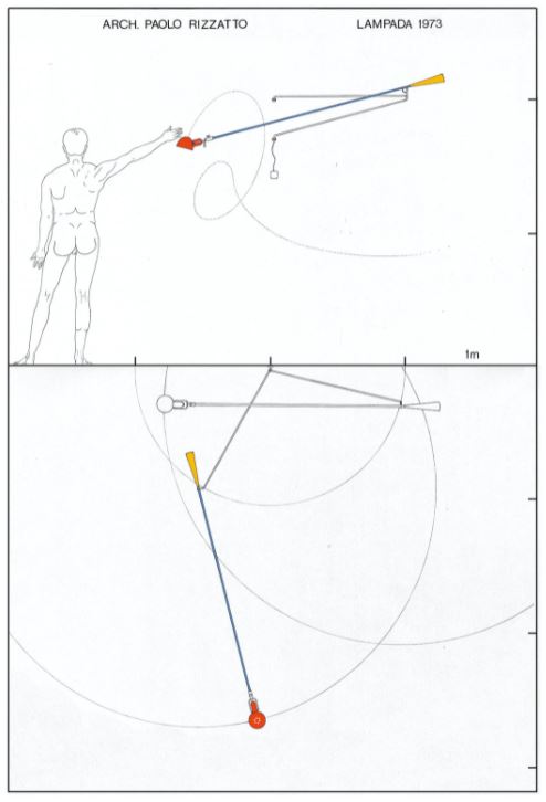Wall lamp providing direct light. Painted steel adjustable arm and reflector. Chrome-plated brass reflector support. Cast iron tapered counterweight. Painted steel wall fixture.