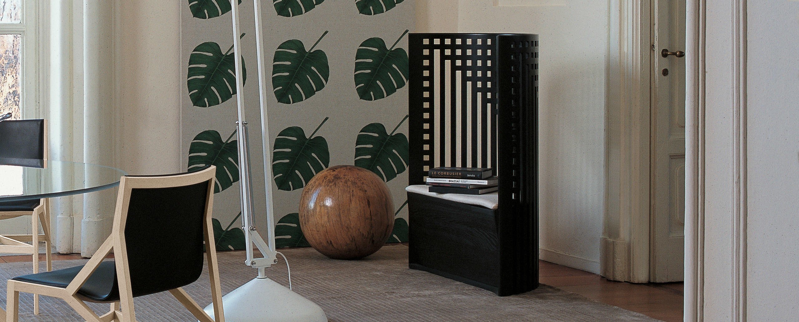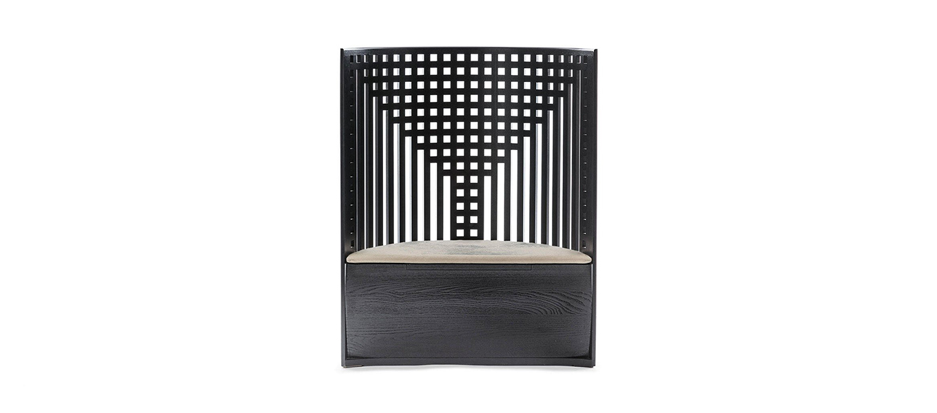 This throne-like armchair is a new iteration of the model that CRM donated, in 1904, to the “Willow Tea Rooms” in Glasgow, his native city. The tall semi-circular back served to separate the entrance area from the tea-room behind it. The back encompasses the seat, illustrating to perfection Mackintosh’s geometric and Art Nouveau style. For Cassina, creating this chair meant marrying advanced technology and the company’s premier carpentry skills. The latter can be seen in the precision needed to assemble the components that make up the elegant, light-weight latticed frame.