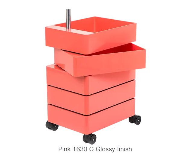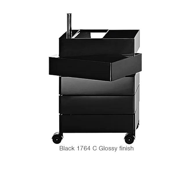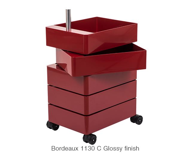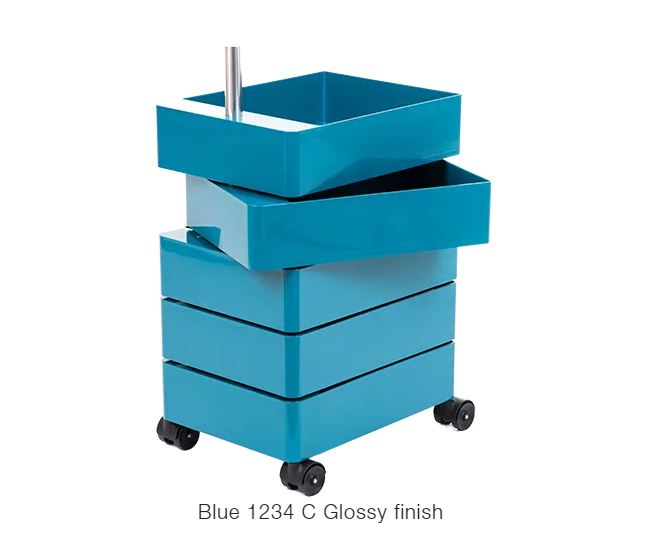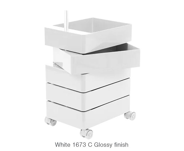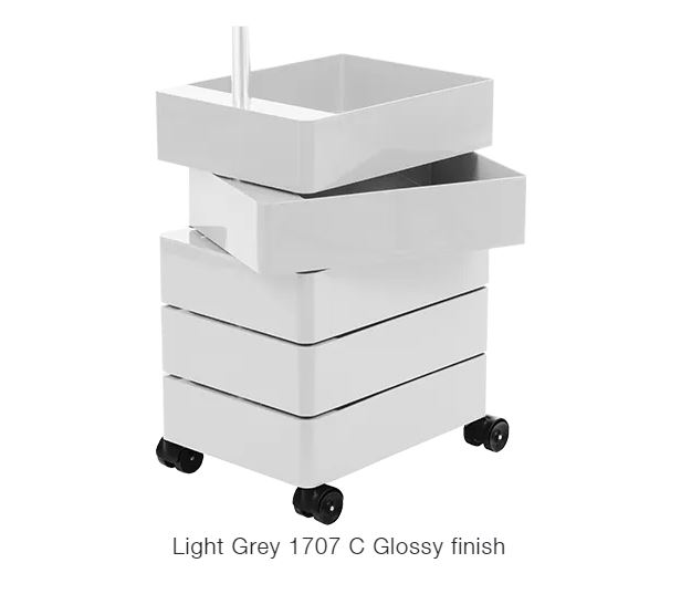 Material: glossy ABS including one tray. Joining tube in aluminium. Available in two heights.
