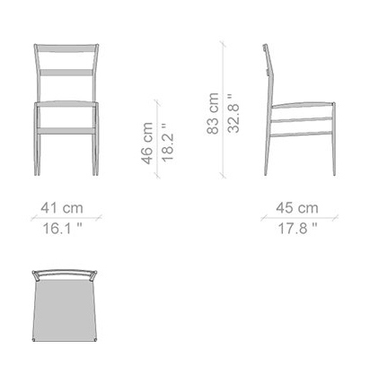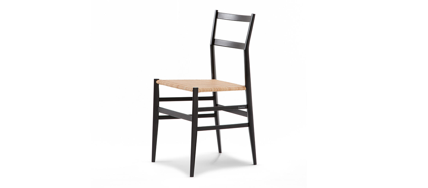 While the frame exploits the inherent lightness and flexibility of ashwood, the seat surround is in beech, which is more close-grained and stronger. The wood parts are created by machine, and hand-finished, glue being applied with a brush, the excess being wiped off, and the seat being hand-woven. Thus do crafts expertise and industrial innovation come together in what we could call a “prime object”, informed by the chair-making traditions of Chiavari, in Liguria, northern Italy. The Superleggera is available both in the classic version or with coloured legs, as well as with a padded seat.