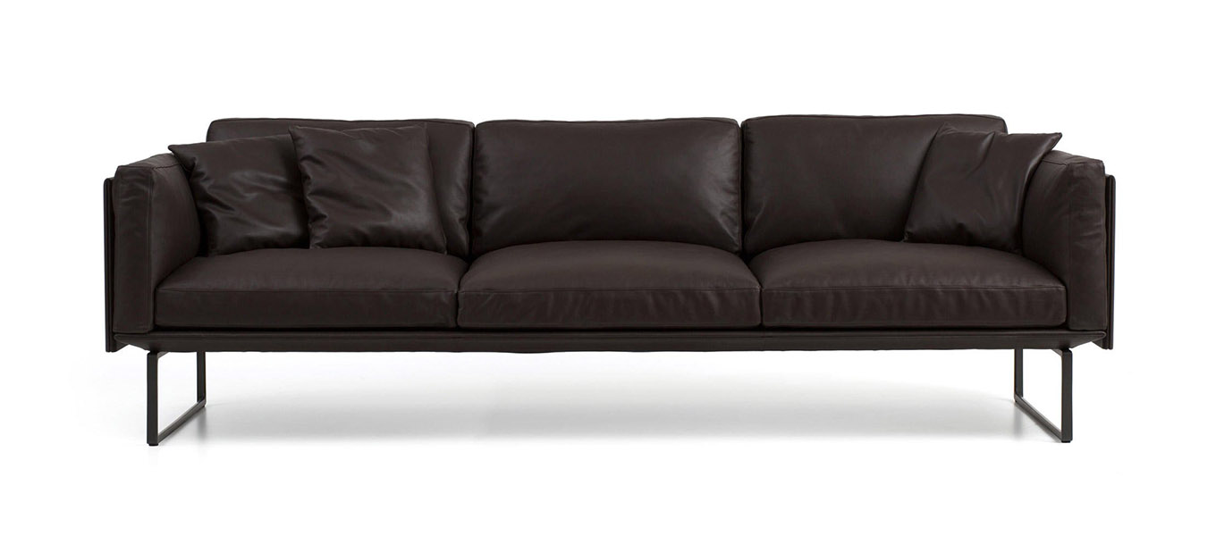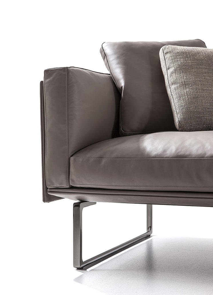 Classic comfort and elegance bespeak the minimal yet versatile proportions of the Otto sofa, whose modular structure combines premier construction skills and bespoke upholstery expertise in every detail. Otto’s extruded aluminium base lends itself to creative compositions of varying lengths, the essential lines of the overall design allowing for a wide array of configurations. Executed by expert hands to ensure a precision-perfect fit, the upholstered cushions slide seamlessly into the central slots in the flexible panels, while the sofa’s light, soft lines are complemented by the feather-filled inserts in the seat, back and arms. Finished to the highest standards, the Otto sofa is also available with polyester inserts.