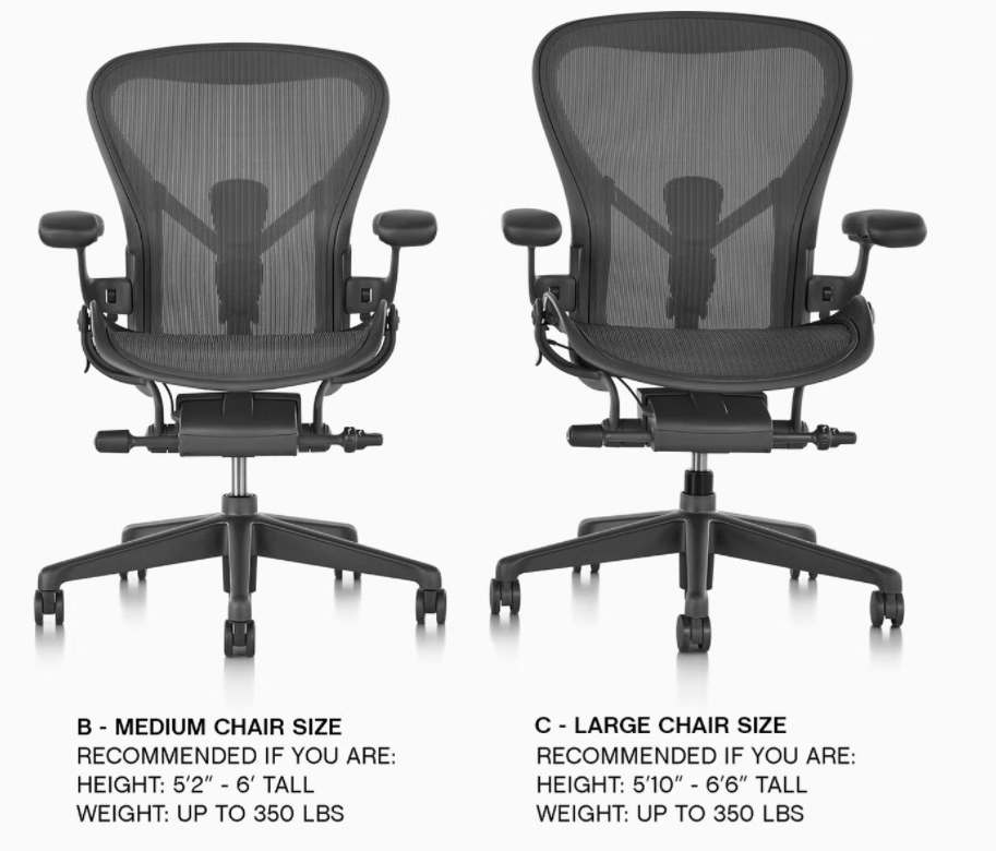 • Two chair sizes mean the most comfort to the largest range of users.