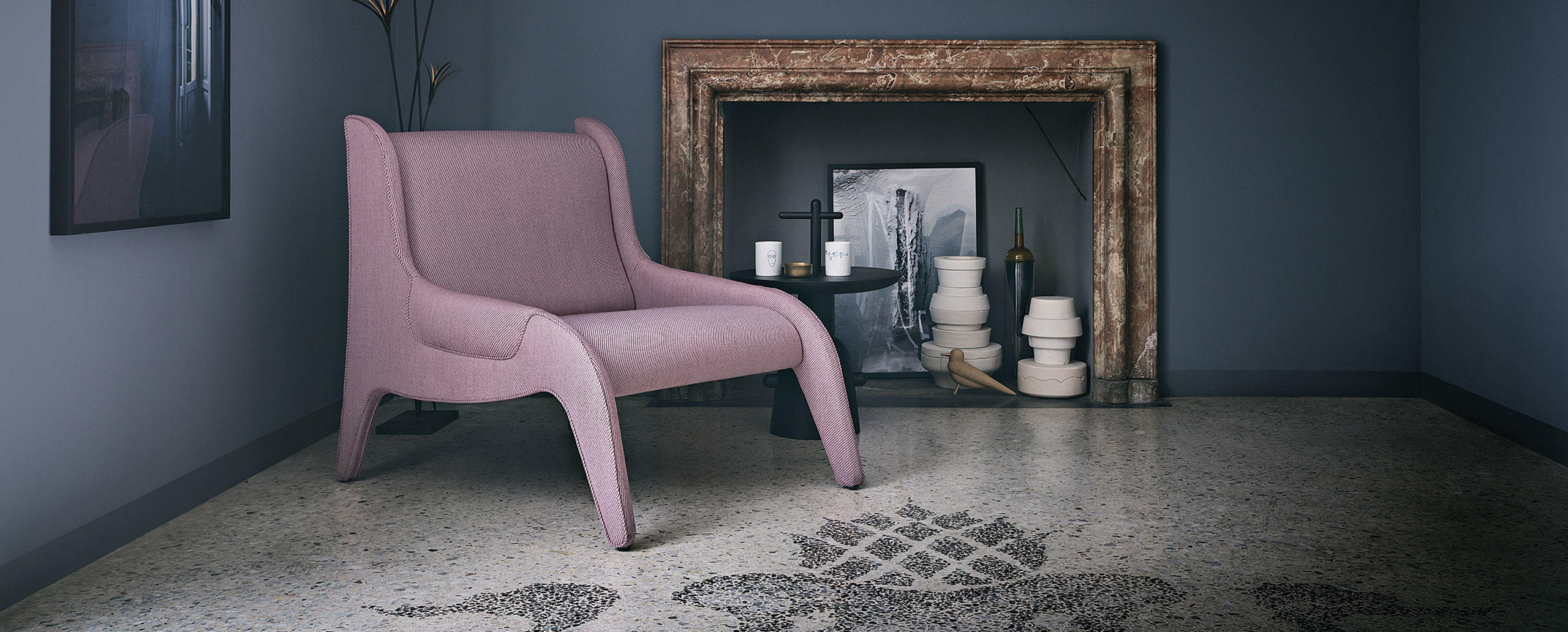 Antropus was created at the end of the 1940s when Marco Zanuso was commissioned to design the sets for the Italian-language version of Thornton Wilder’s play The Skin of Our Teeth, which was dubbed “La Famiglia Antropus” in Italian, and was performed at the Piccolo Teatro in Milan. The architect worked with Arflex to produce an armchair fully upholstered in foam rubber; at the time, this material was considered highly innovative and was being promoted for use in domestic furniture-making for its expressive, and industrial ergonomic potential. The present-day version of this chair features polyurethane foam CFC free. This lends itself to creating a oversized and comfortable seat and back-rest that fit snugly into the slender, curving profile of the side panels.