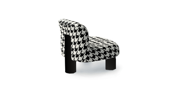 An innovative and characterful upholstered chair with three large tubular legs on castors, designed by Cini Boeri. An ideal seat for comfort and relaxation and and a distinctive presence in any setting.