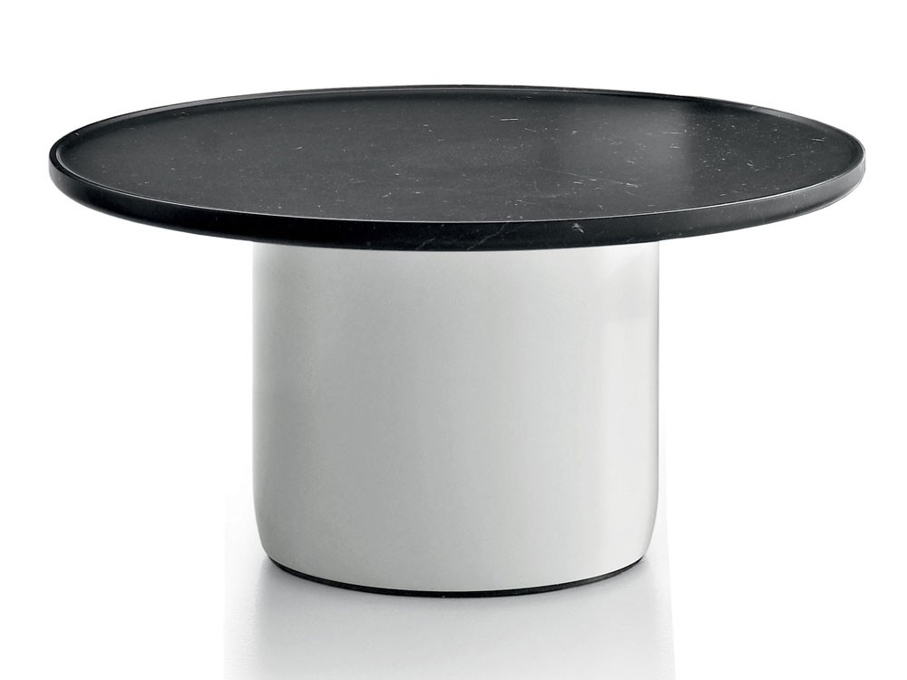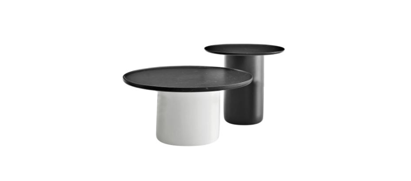 Multipurpose tables with lacquered cylindrical bases that taper in slightly at the bottom smoothing out their geometry. All have a marble top with a raised edge resembling a tray. A formal exercise is created through the combination of different materials, the contrast between the hardness of marble, soft design and minimal details giving the illusion of imperceptible movements of form.