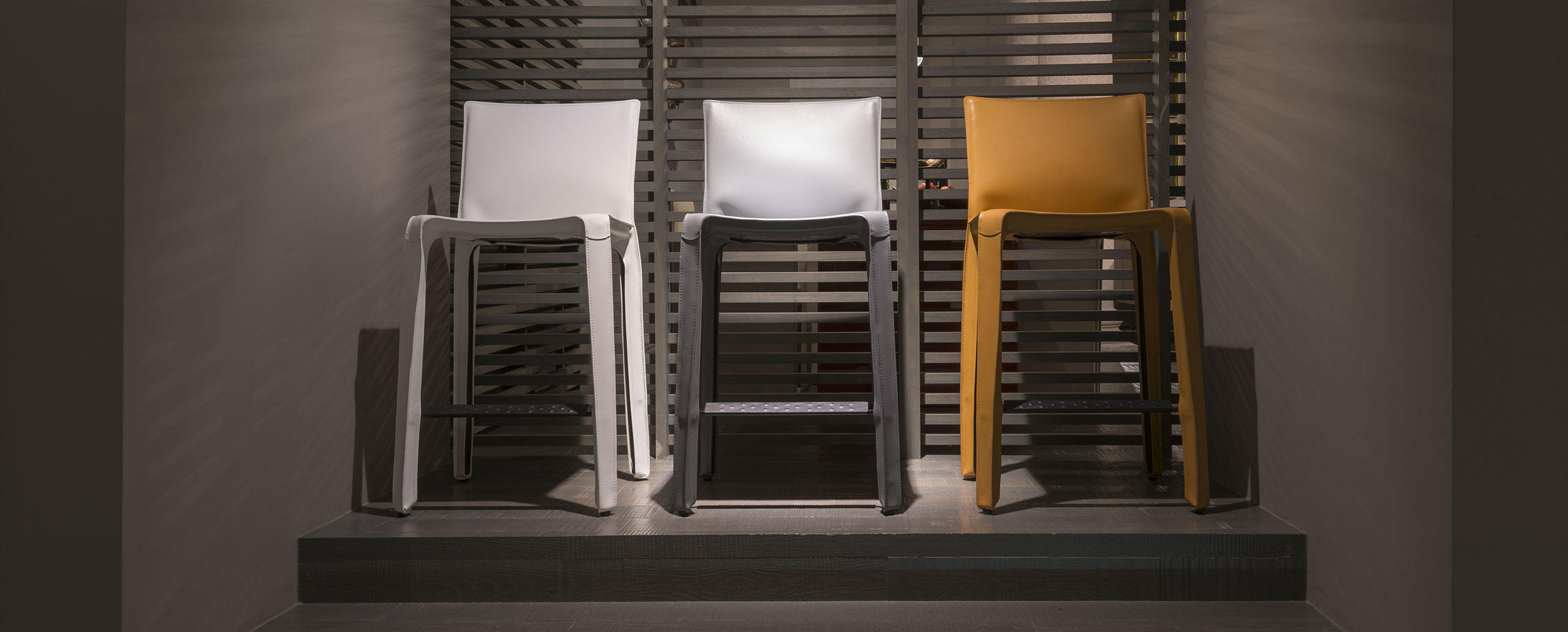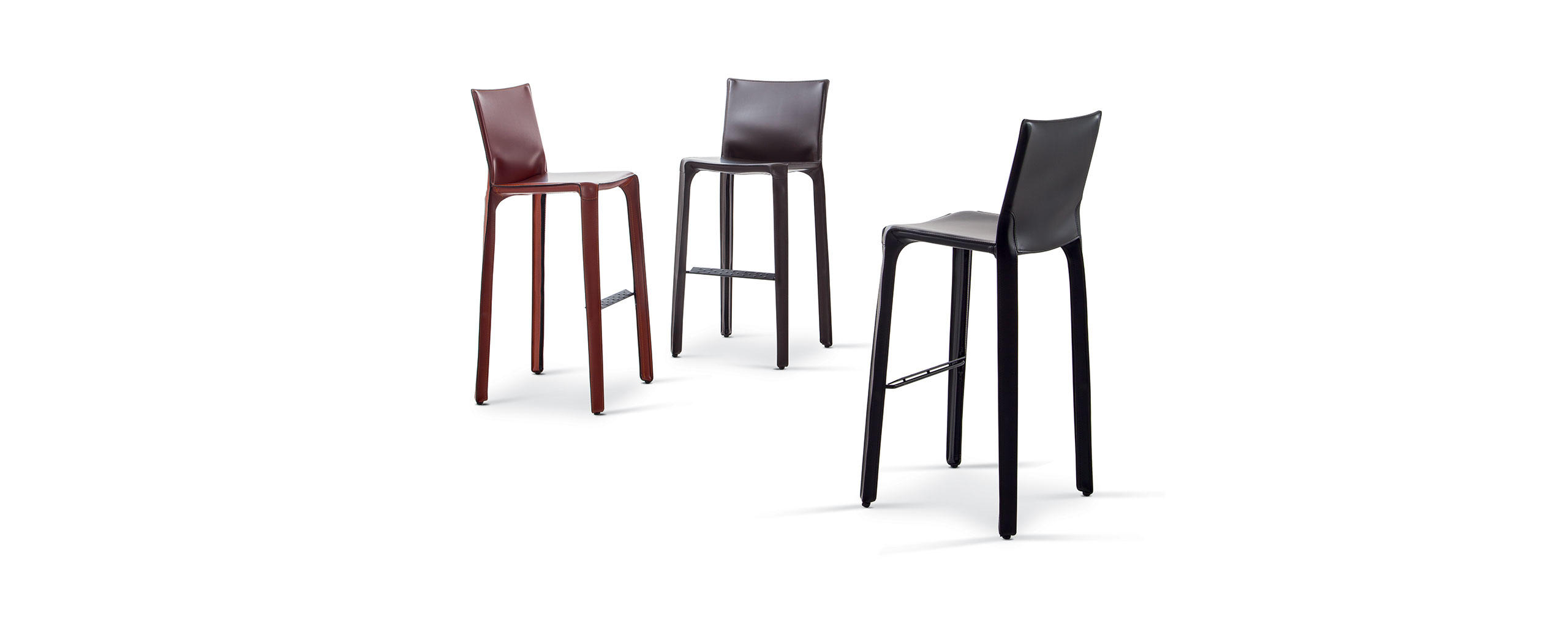 “This was a new kind of chair, constructed totally out of leather, much cloned since then.” Thus Mario Bellini describes Cab, a best-seller that he designed in the 1970s, which is now a signature piece in Cassina’s I Contemporanei collection. Cab was the first-ever chair to feature a free-standing leather structure, inspired by how our skin fits over our skeleton. The upholstery consists of sixteen pieces of saddle leather. Individually die-cut, they then undergo fourteen discrete procedures, again by hand. The pieces are sewn together only when their outer edges have been trimmed to ensure a perfect fit. Once assembled, the cover is attached to the chair’s steel skeleton and held in place by means of a zipper fastening, as in a bespoke tailored garment.