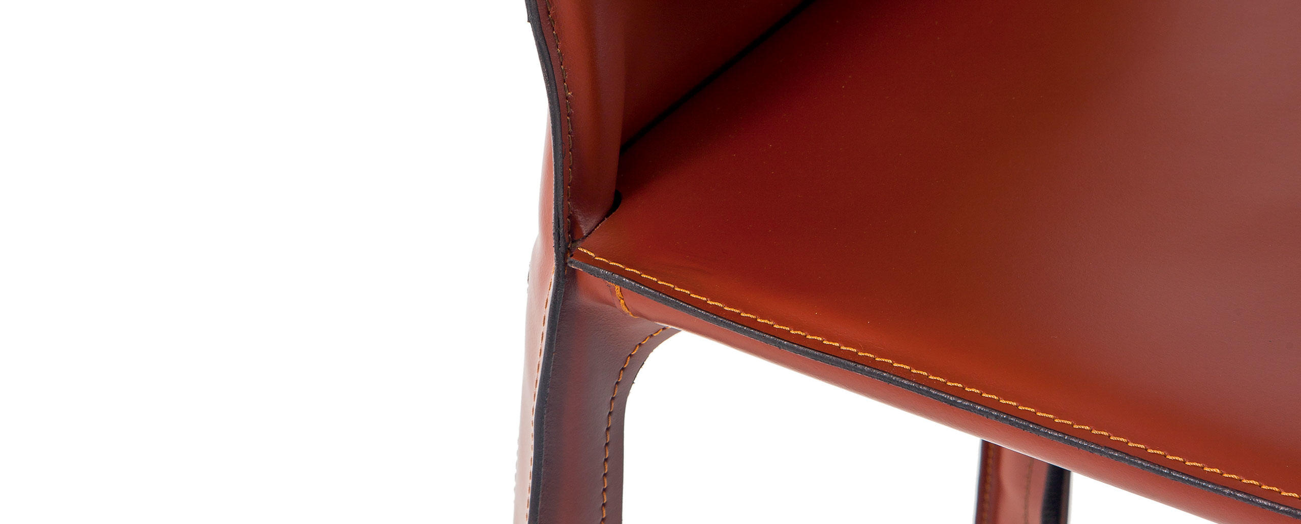 “This was a new kind of chair, constructed totally out of leather, much cloned since then.” Thus Mario Bellini describes Cab, a best-seller that he designed in the 1970s, which is now a signature piece in Cassina’s I Contemporanei collection. Cab was the first-ever chair to feature a free-standing leather structure, inspired by how our skin fits over our skeleton. The upholstery consists of sixteen pieces of saddle leather. Individually die-cut, they then undergo fourteen discrete procedures, again by hand. The pieces are sewn together only when their outer edges have been trimmed to ensure a perfect fit. Once assembled, the cover is attached to the chair’s steel skeleton and held in place by means of a zipper fastening, as in a bespoke tailored garment.