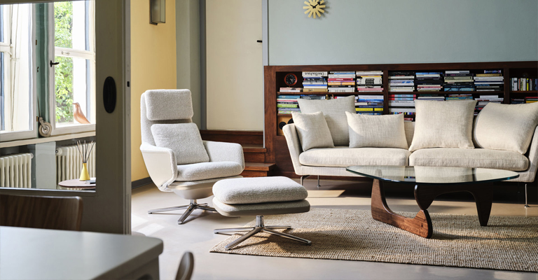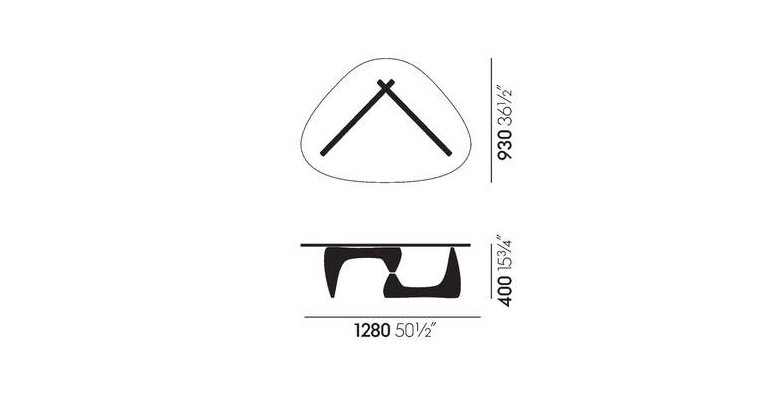 In creating his design for the Coffee Table, Isamu Noguchi translated the biomorphic aesthetic of his sculptural works into a piece of furniture with distinctive organic forms. Presumably for this reason, Noguchi regarded the table as his best furniture design. Two wooden leg elements, which are available in black ash, maple or walnut, are positioned at a right angle to provide a stable support for the heavy, sturdy glass top.