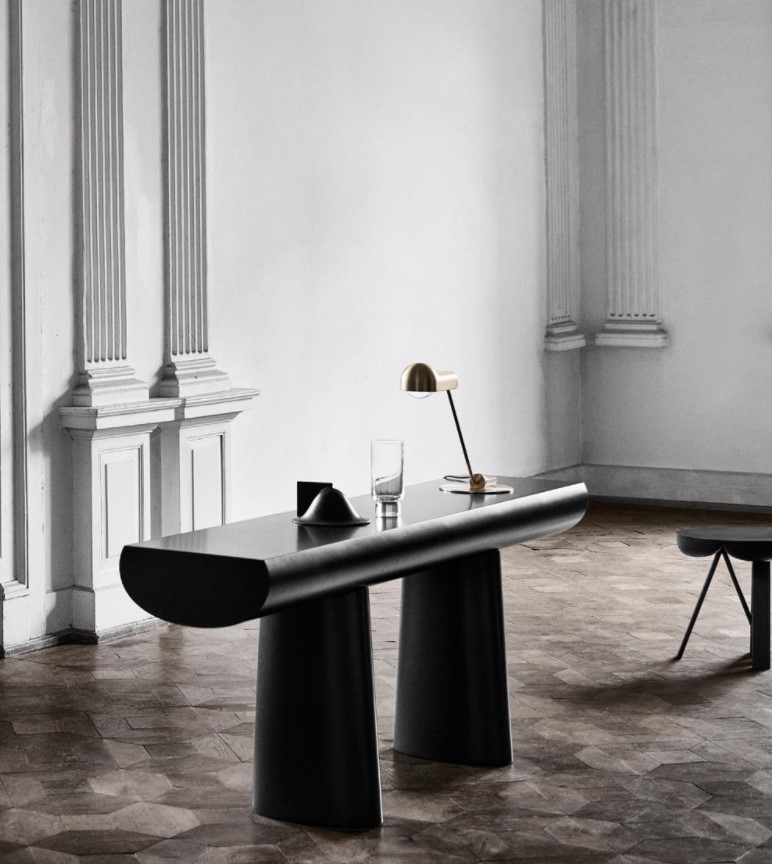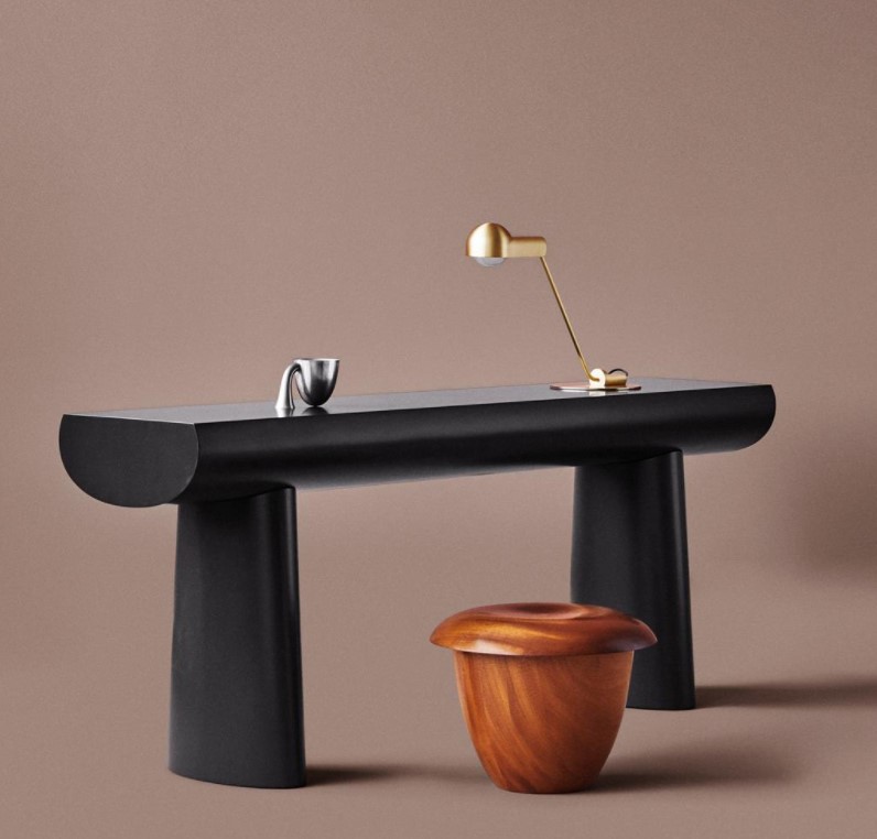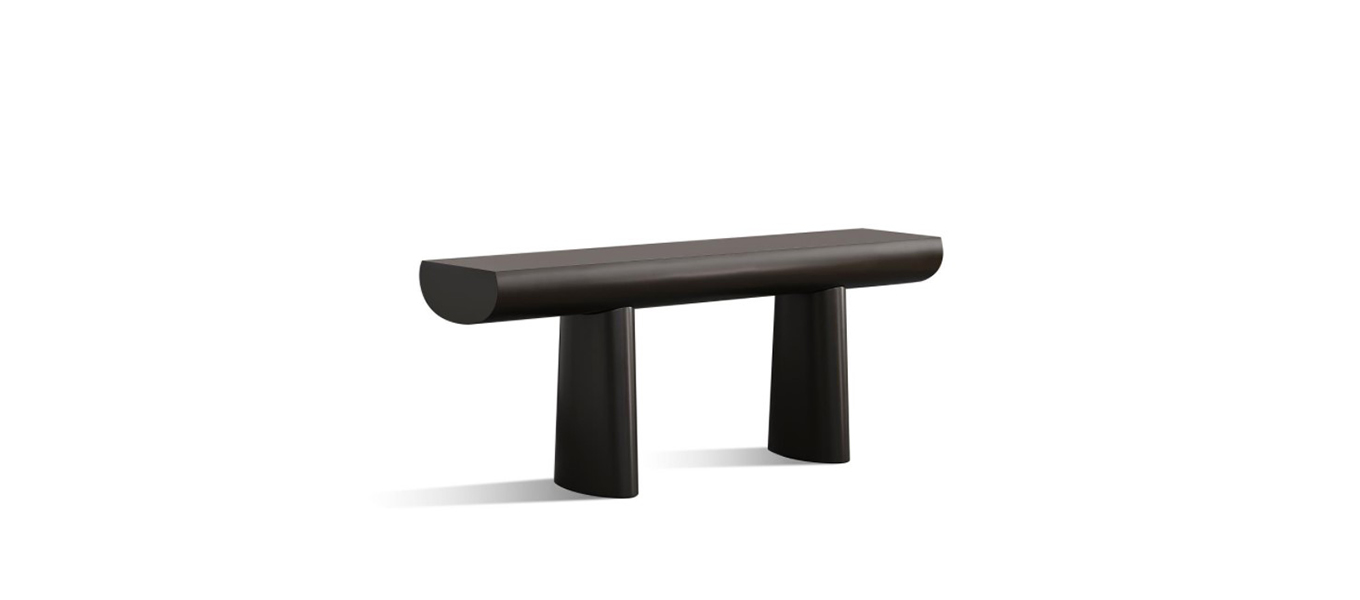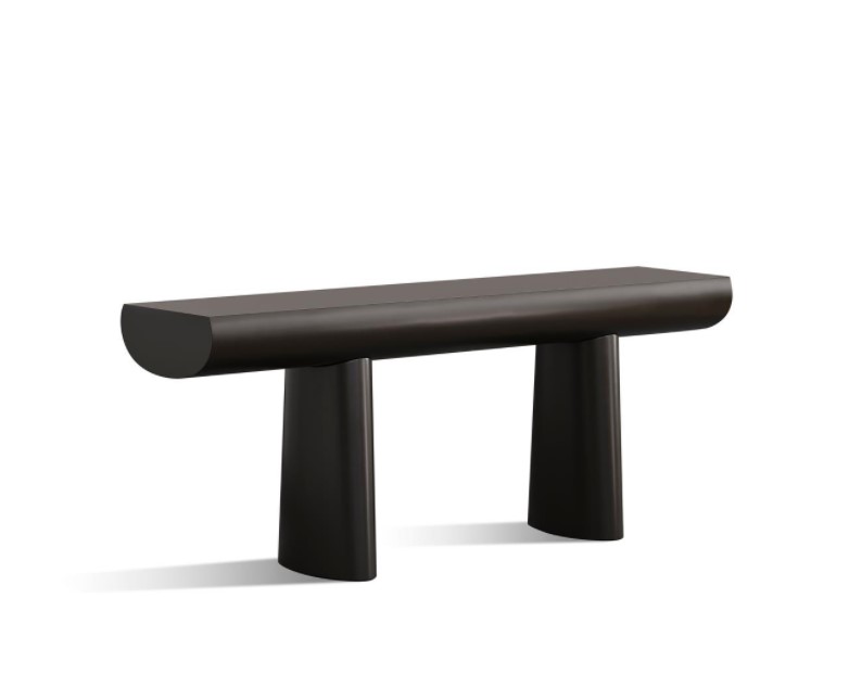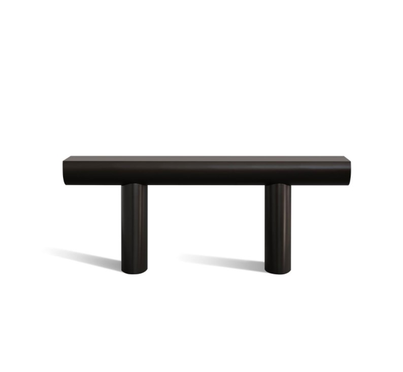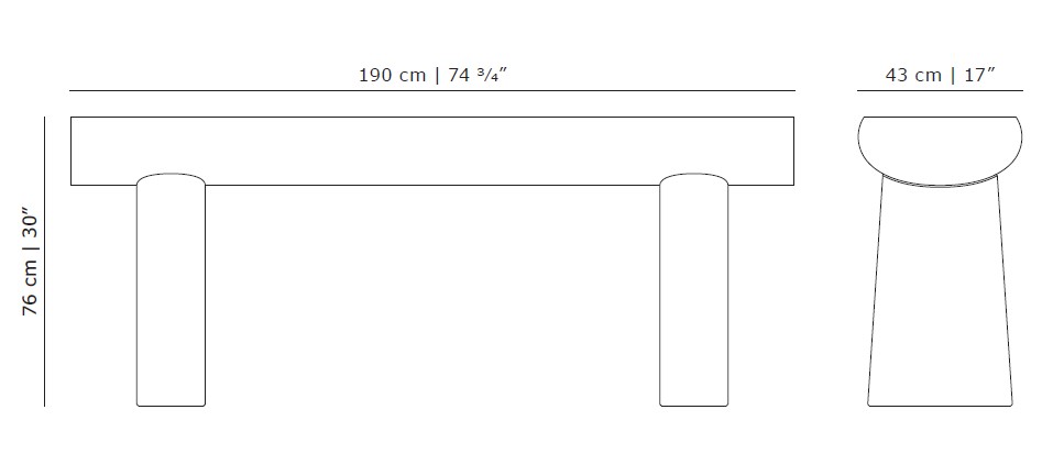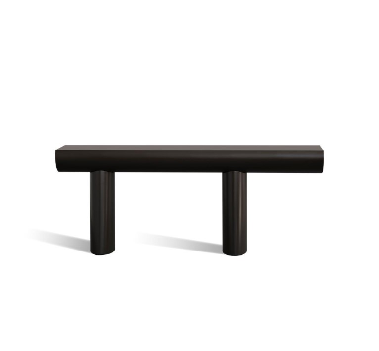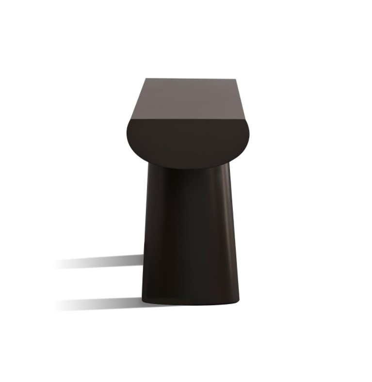 Tranquil and seductive, Aldo Bakker’s Console Table floats exquisitely between sculpture and furniture. It depicts the simplest concept of a table: two columns and a surface. The legs are an elongation of the line created by the tabletop. The tabletop and the base of the legs have the same width, making them equally important to the design. The distance between the legs is not fixed, but can be changed as preferred, adding to the sculptural quality of this piece. Color: Dark Sepia.
