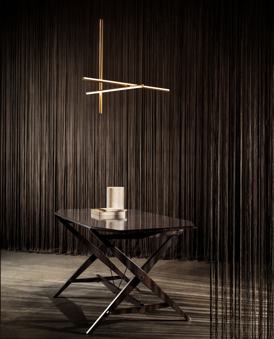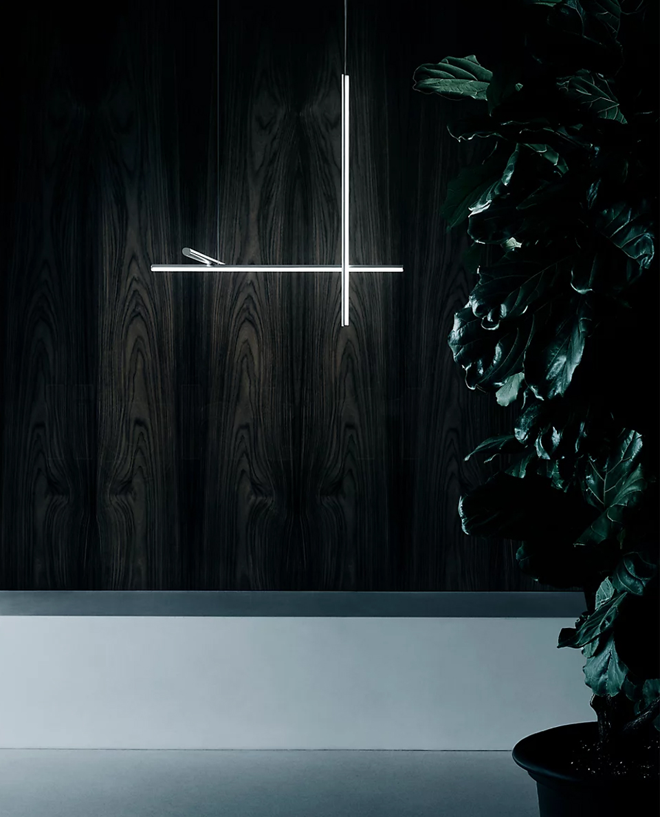 Coordinates is a lighting system with diffuse light composed of horizontal and vertical luminaries arranged in a bright grid of various shapes and complexities. Each element is made of extruded anodized aluminium with a champagne finish and a diffuser in platinum optical silicone with an integrated LED strip (CRI 95). . The ‘S Module’ is also available. Its geometry was designed to be repeated to create large grids for custom installations. Each Coordinates configuration includes its own ceiling rose, whose integrated electronics allow for the use of different dimmer systems: push, 1-10, DALI. In the absence of these systems, the amount of light can be set during installation with the push system included in the rose.