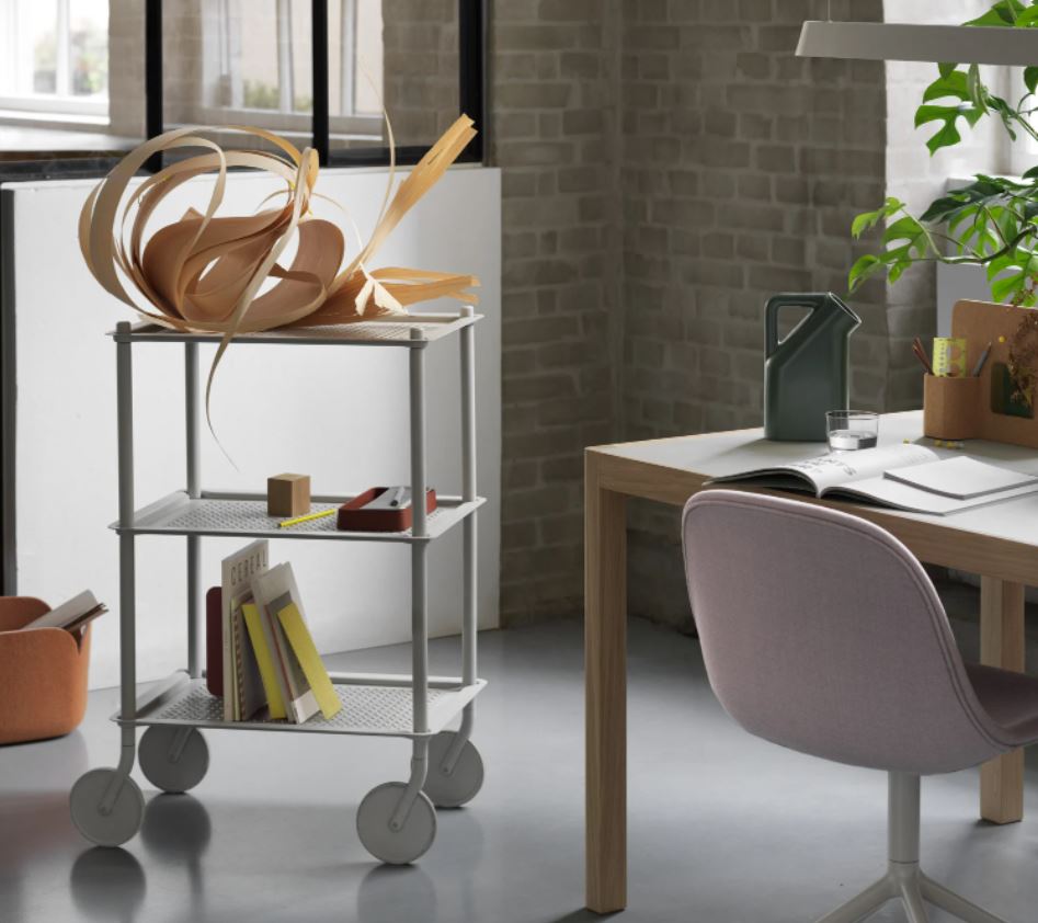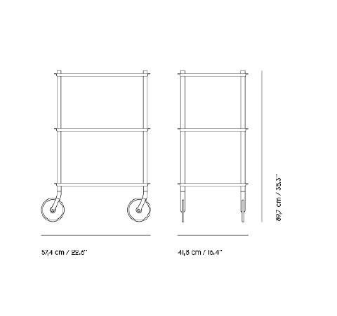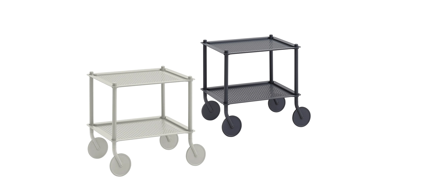 The Flow Trolley brings the concept of functional design into a modern context through its grooved trays in embossed metal for a contemporary expression, paired with the flexibility of its wheels that allows for it to be moved from one room into the other. Designed in a monochrome look, the Flow Trolley adds modern storage to any space in the home, workplace or hospitality setting.