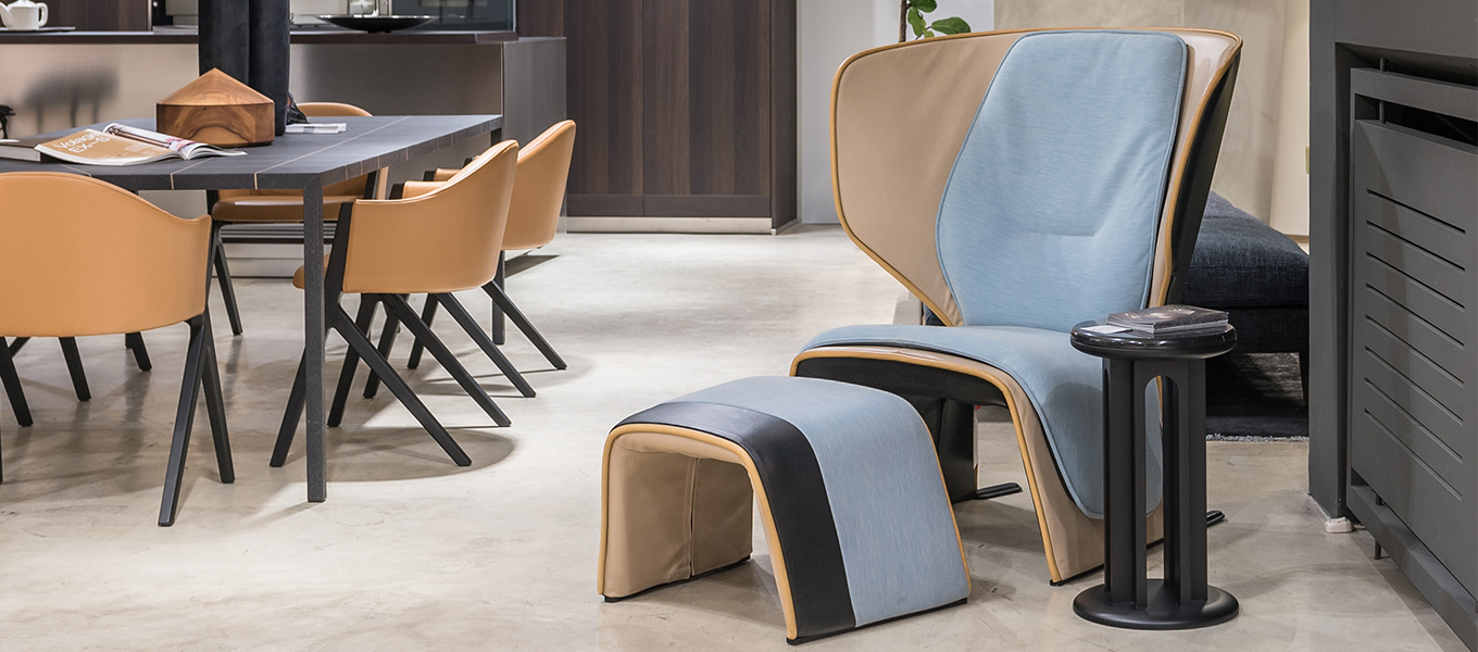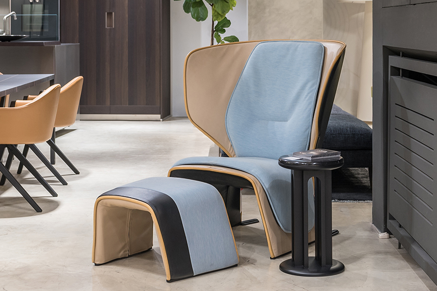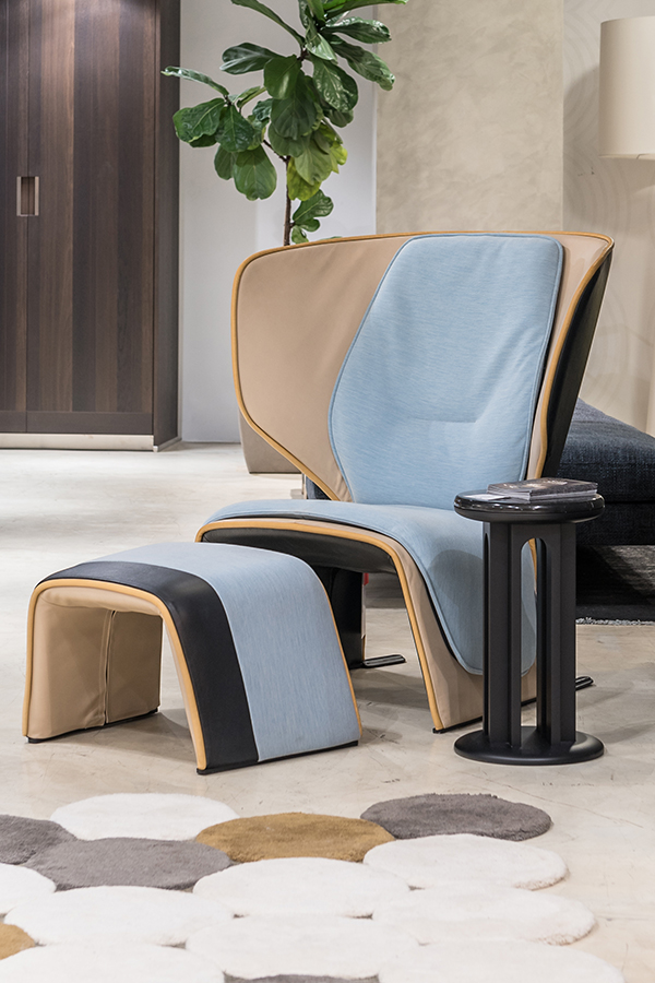 Gender by Patricia Urquiola is an elegant, enveloping design armchair with many personalities, thanks to the combinations of colors and materials of the upholstery and finishes.