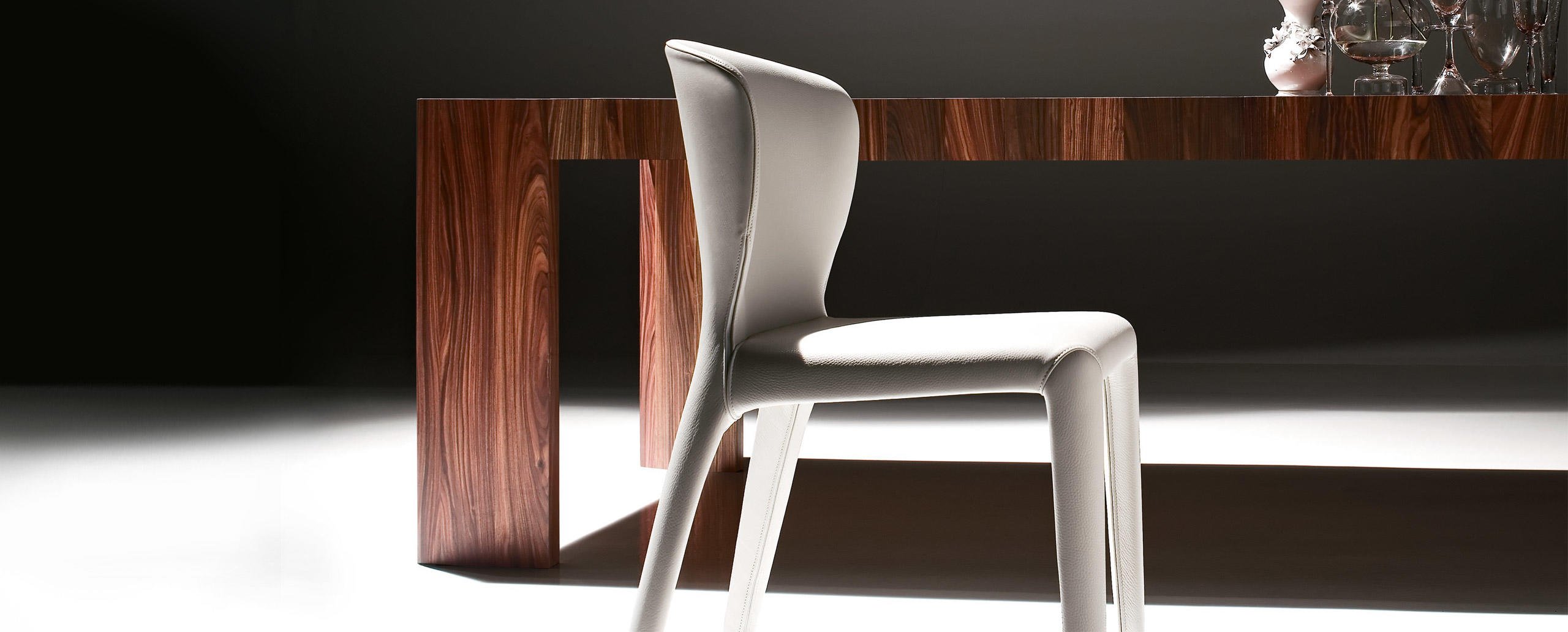 Elegant and functional, the Hola chair is one of Cassina’s all-time best-selling pieces. Conceived to offer comfort to the max, both in domestic environments and for contract use, Hola’s delightful curves, crafted from one single mould, conjure a harmonious interplay between the seat, back and legs, where the inner steel core of the chair marries the expanded polyurethane padded upholstery to perfection. Cassina’s construction skills are revealed in the company craftsmen’s approach to joints and their meticulous attention to detail. Supplied with or without arms, this chair is upholstered in leather, or with removable fabric covers, alternatively in its most recent iteration: leather with fabric.