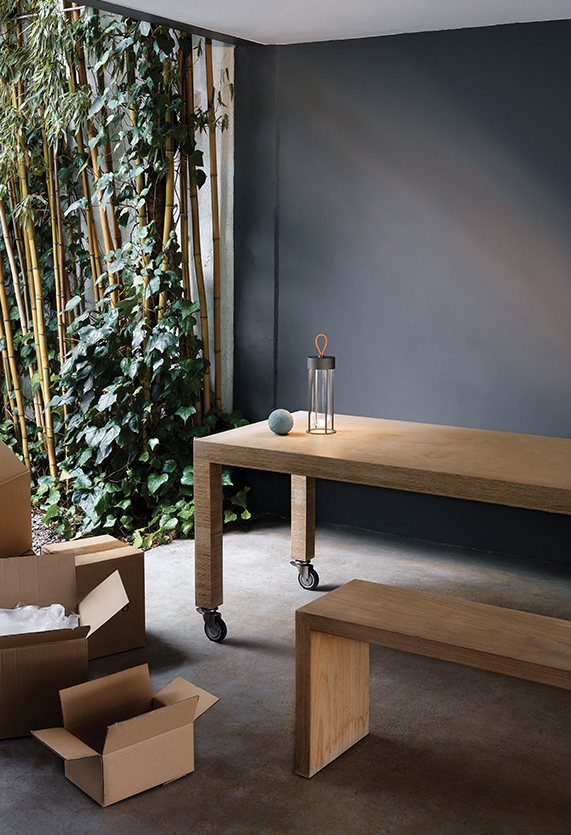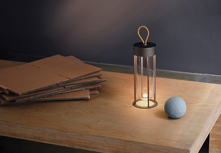 Lighting device for exterior ground installation. Opalescent diffuser integrated in the head and outer protective glass in transparent borosilicate. The structural parts are made of die-cast and extruded aluminium treated with a chemical conversion process to protect against atmospheric agents. The body is powder coated with a range of available finishes. Integrated LED light source with Edge Lighting technology to guarantee perfectly uniform lighting. Portable version equipped with handle for transport. Dimmer driver 5/100–240 V/50-60 Hz integrated into the body of the device with optical touch sensor on the head to regulate the brightness in 4 steps: 100% – 50% – 3% – OFF. Rechargeable via micro USB-C cable, 120 cm long, guaranteeing continuous lighting up to 6 hours. IP20 charger with EUR, UK, USA interchangeable plugs. When setting up and maintaining the device, be particularly careful not to damage the powder coating. Damage combined with water may lead to corrosion. Chemical products may damage the corrosion protection.