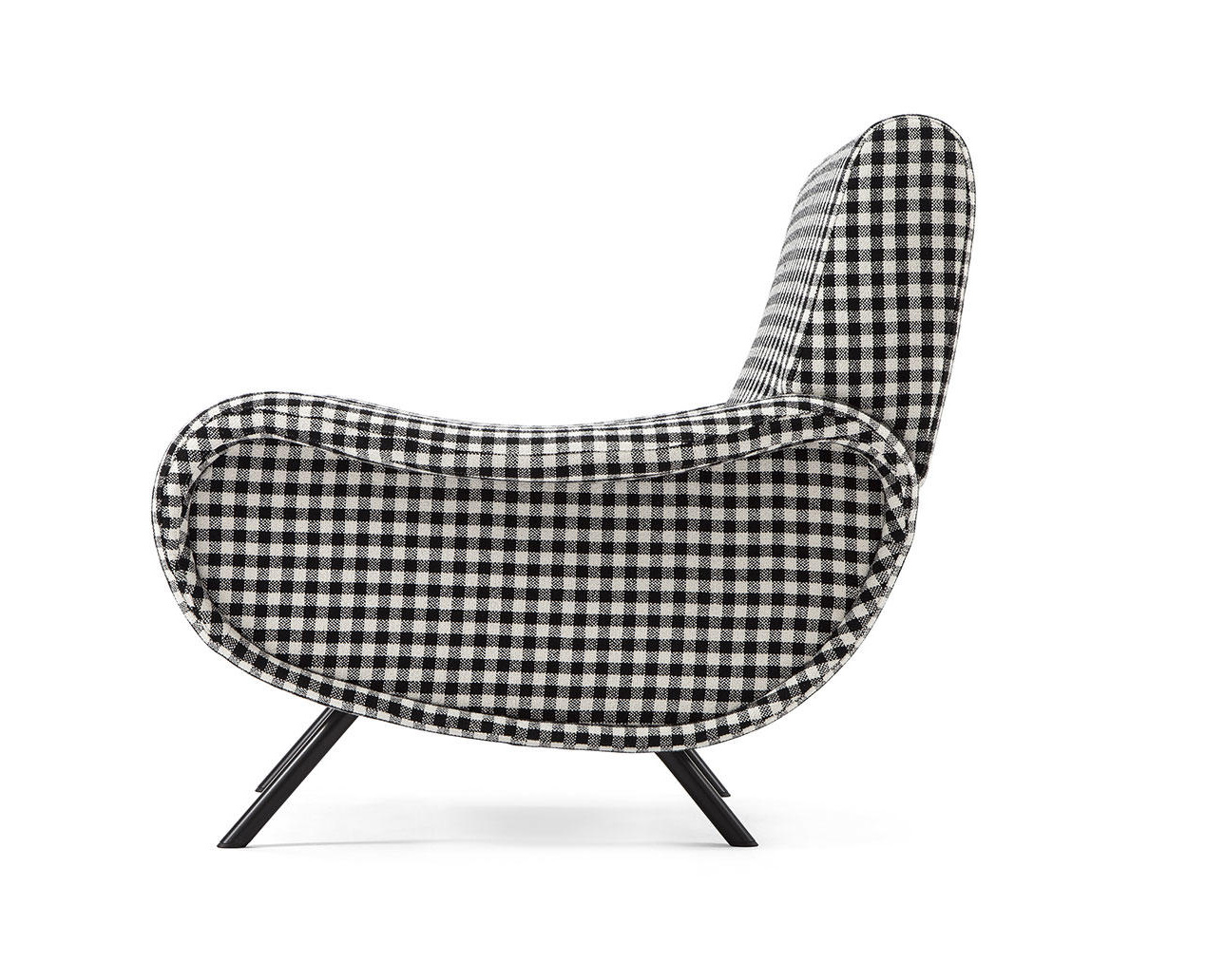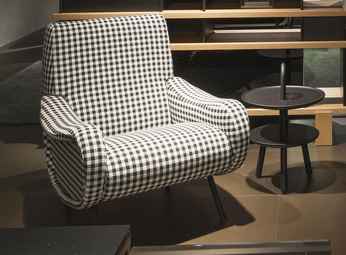 An icon of 1950s’ Italian Design, the armchair-sofa Lady stands out for its extraordinarily contemporary construction, a symbol of innovation supreme, in terms of style, materials, and technology. In addition to being the first armchair to incorporate expanded polyurethane and foam rubber, the armchair’s seat showcased a new system of springing, using reinforced elastic straps to ensure premier comfort; meanwhile the slender, slim-line metal legs showcase the design’s lightness of touch. The structure is contained in the seat, the back, and the arms, the outcome being a veritable masterpiece of Italian furniture design excellence; so much so that Lady was awarded the Gold Medal at the IX Milan Triennale, in 1951. Cassina’s new re-edition focuses on the looks of the Lady chair, adding a delightful range of new fabric options, including a number by Belgian designer Raf Simons.