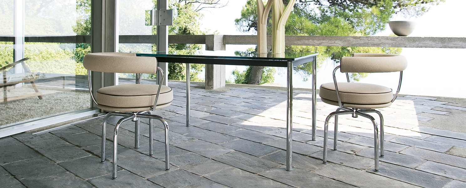 An icon with an aptitude for versatility and functionality designed in 1927 by Charlotte Perriand for her Paris atelier in Place Saint-Sulpice. The design was first exhibited at the Salon des Artistes Décorateurs [Decorative Artists Show] in 1928 and then at the Salon d’Automne