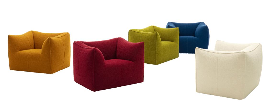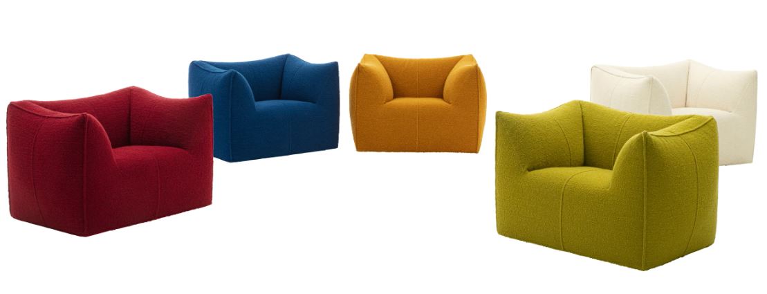The Bambola armchair is part of Le Bambole series, originally designed in 1972, awarded with the Compasso d’Oro in 1979. Icon of timeless contemporaneity and one of the most effective expressions of Made in Italy excellence combining research and creative flair, Le Bambole have provided a very personal answer to the theme of seats. What makes them special is the apparent absence of a load bearing structure, the extreme naturalness of the shape, and the combination of comfort, softness and elasticity that their appearance conveys. Where the original construction was based on a metal structure embedded in polyurethane, now the materials used are of the latest generation, starting from recycled polyethylene gives structure. A sustainable project thanks to the choice of materials and the construction method, that allows the components of Le Bambole to be completely disassembled and therefore easily recyclable.