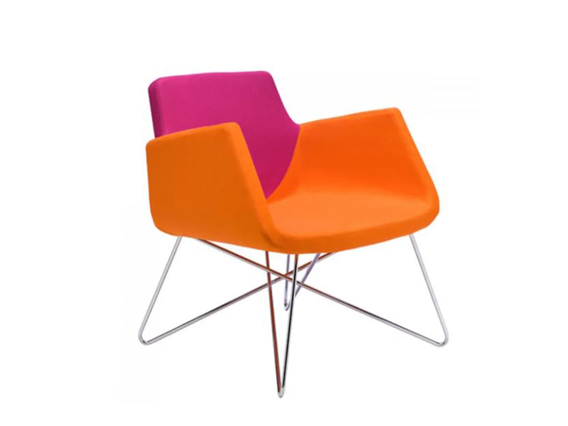 Leggy Peggy is an armchair with fabric upholstery and structure in nickel-plated and chrome-plated metal. The seat/backrest shell with internal metal structure is made of thermo-bound polyurethane foam in various densities.