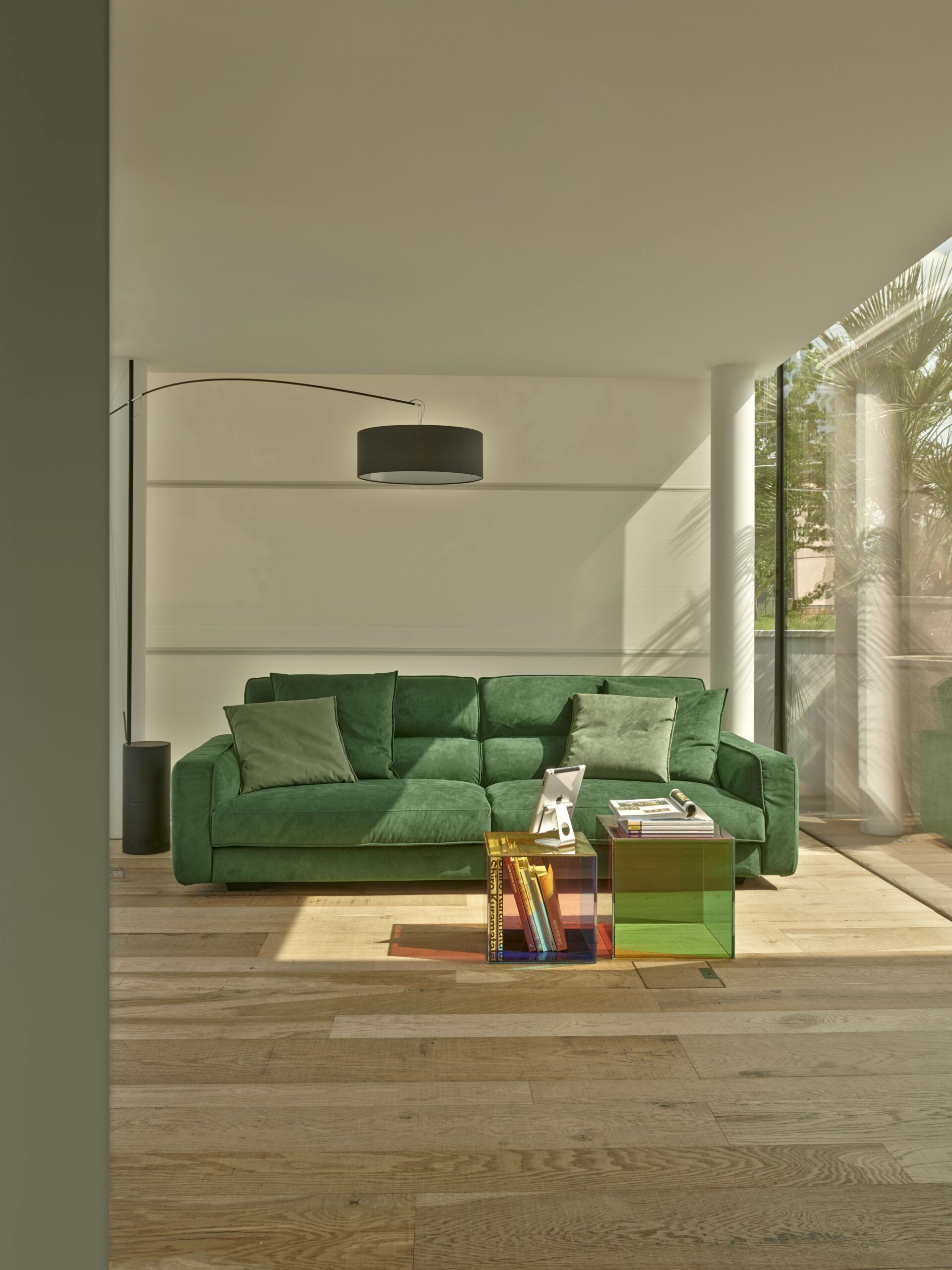 The Luce table by Giulio Cappellini & Antonio Facco represents the fruition of expertise, creativity and the sensibility to experiment with new uses for materials whilst maintaining an essential design. Volumes emphasized through transparency, playful use of colour, refracted nuances: this range of small tables made of extra-clear stratified coloured glass can revive any setting with the captivating allure of a prism. Luce side tables are available in three sizes and a fixed set of colours. When the open side is placed upwards or sideways, they can be transformed into sophisticated containers for the display of objects or magazines.