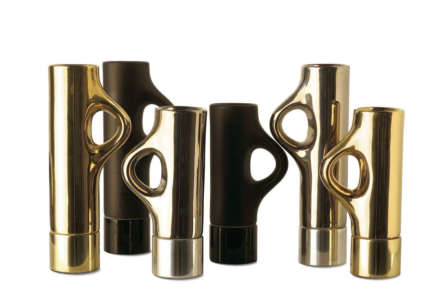 Body of glazed ceramic ad metal base in various nfinishes and colours.