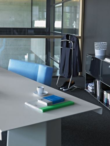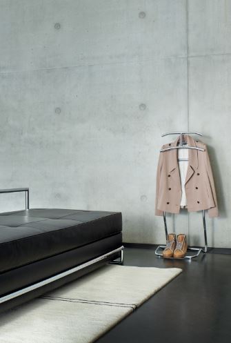 In 1929 the Maharajah of Indore commissioned Eckart Muthesius to build and furnish his Manik Bagh palace. Completed four years later, the palace was a masterpiece of the Art Deco style. Muthesius complemented his architecture with his own furniture and lamp designs. The Maharajah had countless servants. Eckart Muthesius added to them yet another: his valet Mandu serves up an elegant appearance with typical Art Déco flourish. Very feminine and yet – or perhaps for this reason – used mostly by gentlemen who do not want to entrust their business jackets to a simple coat rack. The original chrome-plated version reflects the environment, whereas the new colours, black and bronze, especially emphasize the lines of the design.