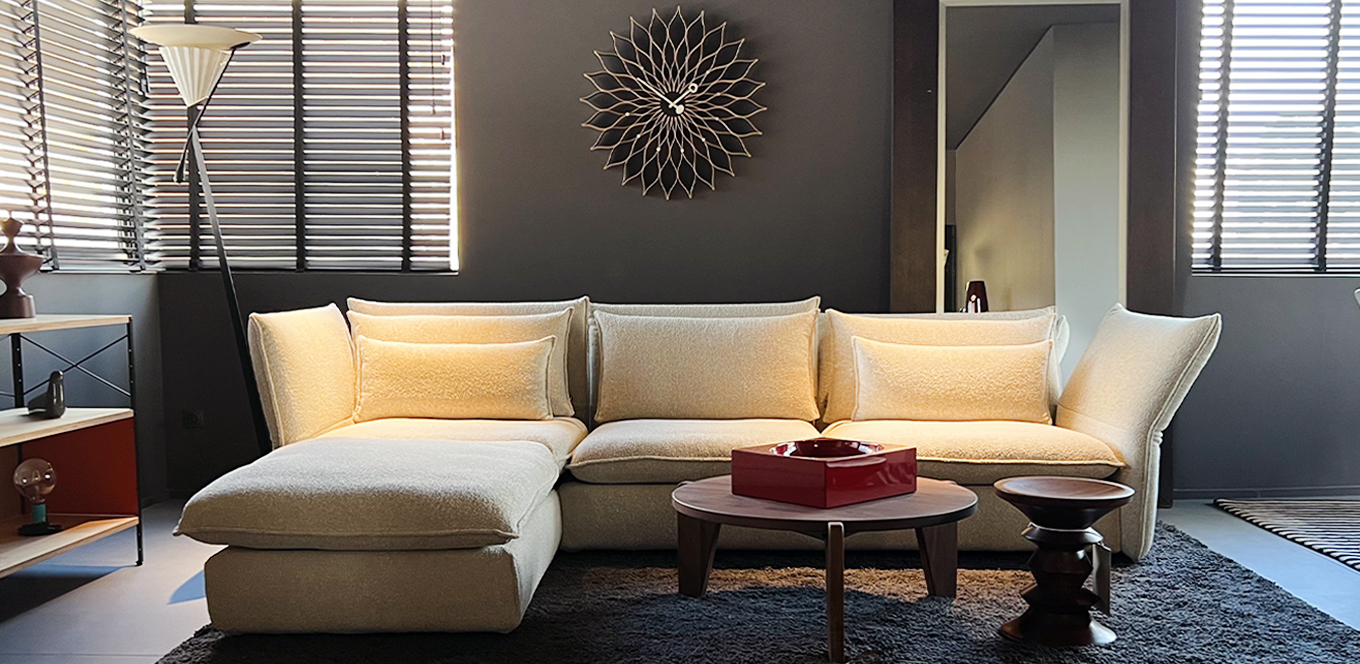The Mariposa Sofa radiates an inviting aura of spacious comfort – and yet maintains a subtly understated presence thanks to its balanced proportions. The sofa owes its extraordinary comfort, on the one hand, to the pleasantly soft upholstery, which completely surrounds the sitter and prevents contact with any hard structural elements. On the other hand, an ingenious adjustment mechanism makes it possible to individually tilt the side and backrest elements for various sitting or reclining positions.