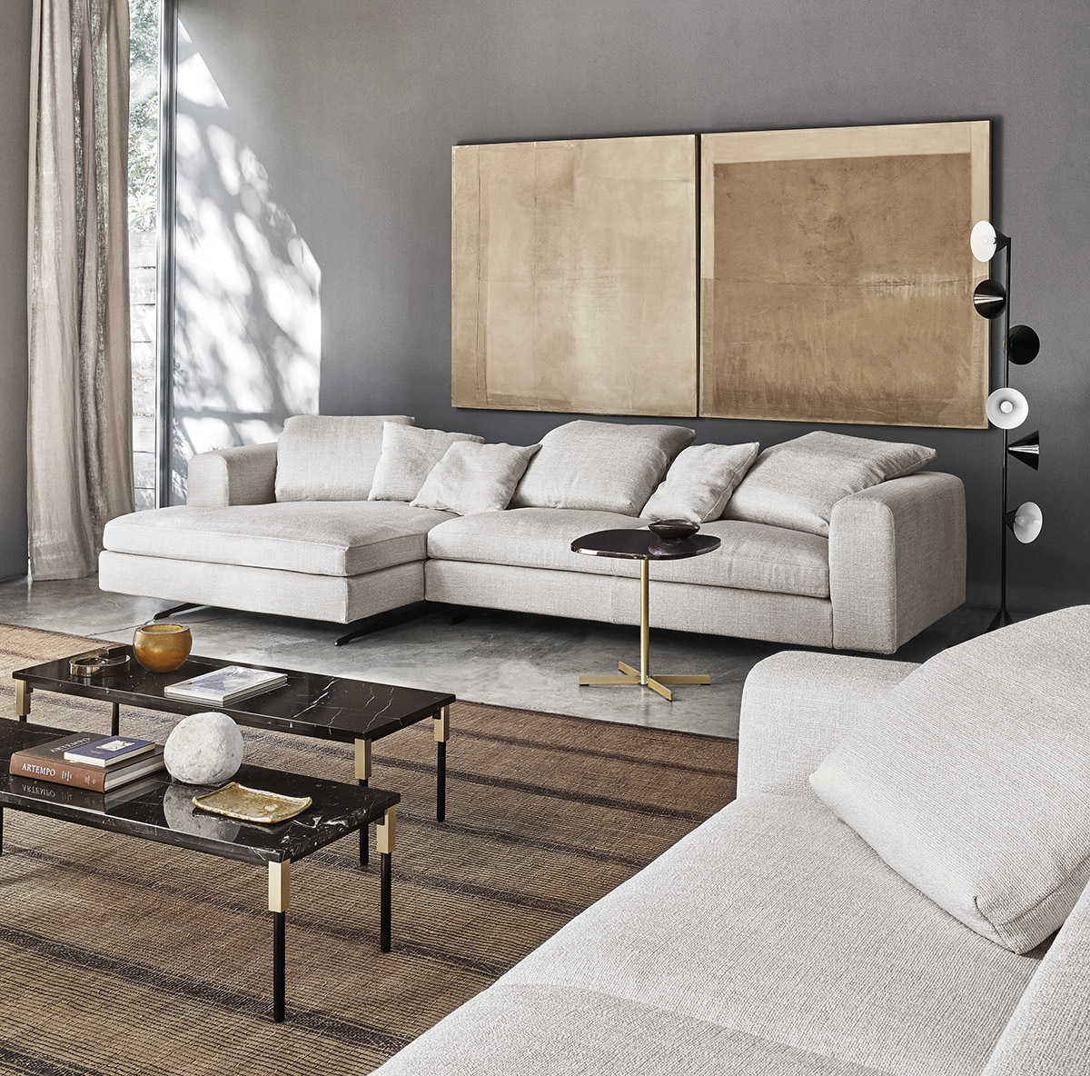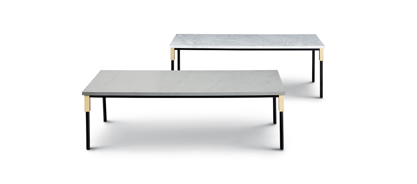 Match project is characterized by the brass joint, that joints the structure with the shelf, becoming a precious and decorative element. The stackable system allows to create, with the same elements, small tables and bookcases of various heights, console and table.