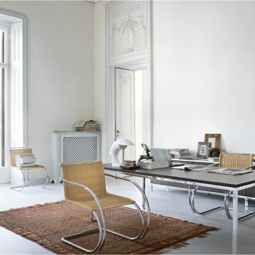 The MR Collection represents some of the earliest steel furniture designs by Mies van der Rohe. The material choice was inspired by fellow Bauhaus master Marcel Breuer, while the forms are thought to be modern derivatives of 19th century iron rocking chairs.