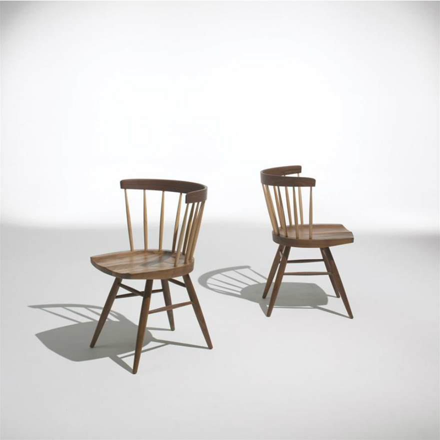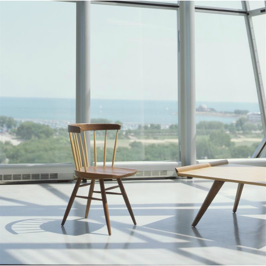 The Straight Chair is George Nakashima’s modern interpretation of the traditional Windsor chair. Featuring low-sheen finishes that amplify the natural grain patterns, the Straight Chair showcases Nakashima’s sensitivity to nature and his legendary craftsmanship.