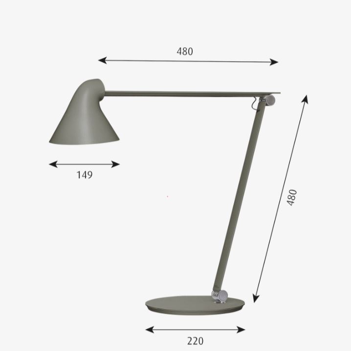 Material: Base: Steel. Arms and lamp head: Aluminium. Joints: Anodised