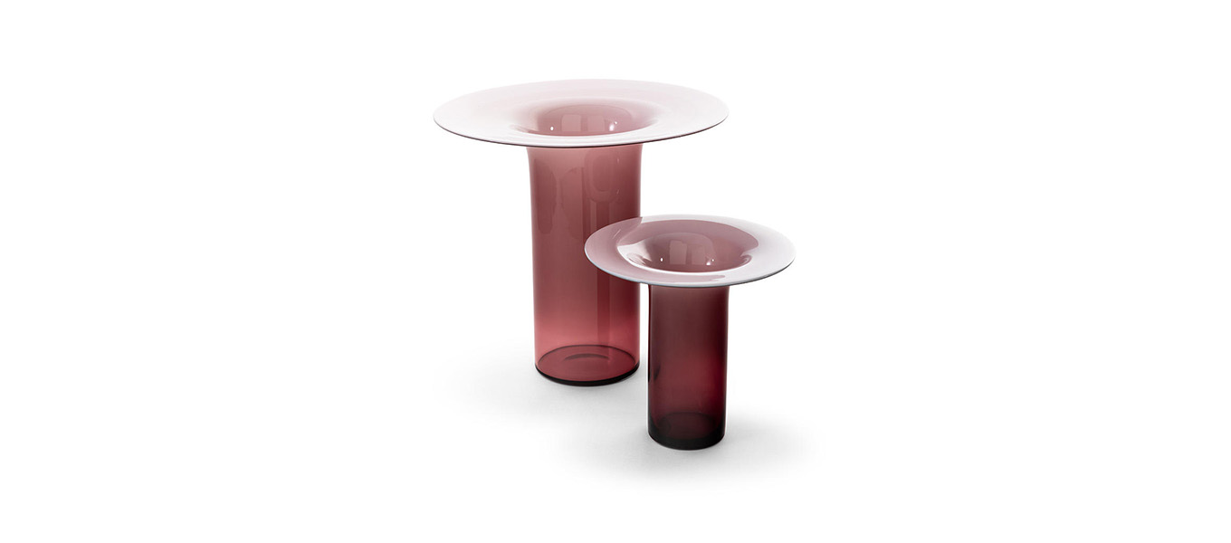 Inspired by a lily and its sinuous shape that retains water, Silvan is a hand-blown venetian glass vase available in shaded amethyst.