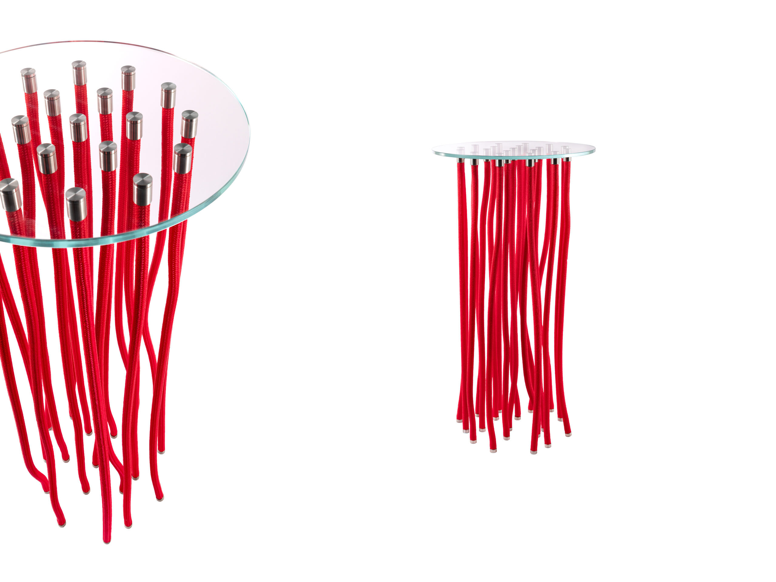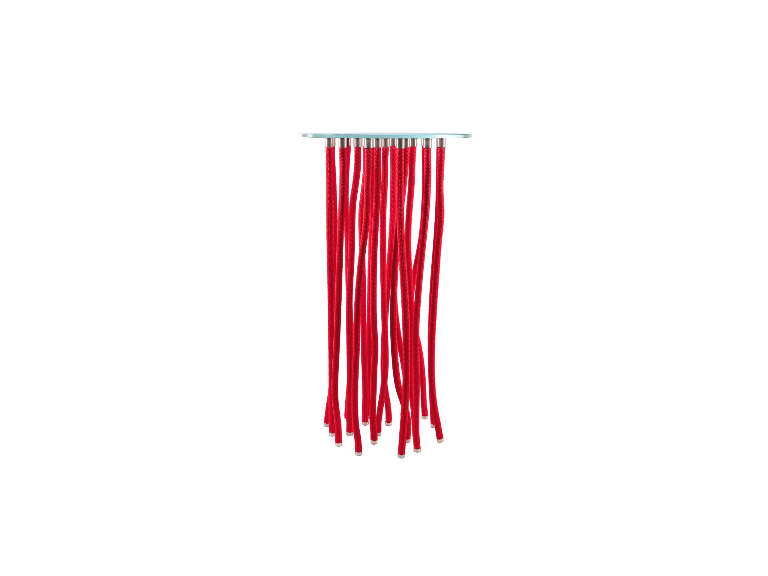 At first glance, the Org table by Fabio Novembre seems an unlikely paradox: the top appears to rest atop elements that hang from above, like tendrils. The internal solidity is hidden from view, thanks to the careful placement of flexible polypropylene rope legs amidst rigid legs equipped with a steel core and rope exterior. Also available as a console, Org has a round top and white, red or black legs with satined stainless steel end caps.