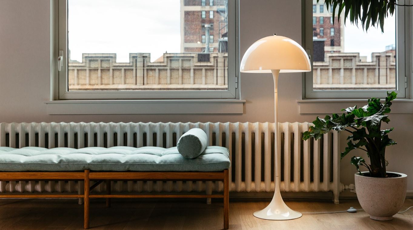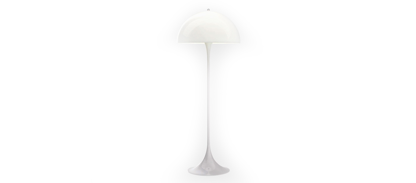 The fixture emits a glare-free, soft and comfortable illumination. The opal acrylic shade leaves a diffused comfortable light atmosphere due to the translucent shade, the downward reflection from the inner shade and the reflection from the trumpet stem.