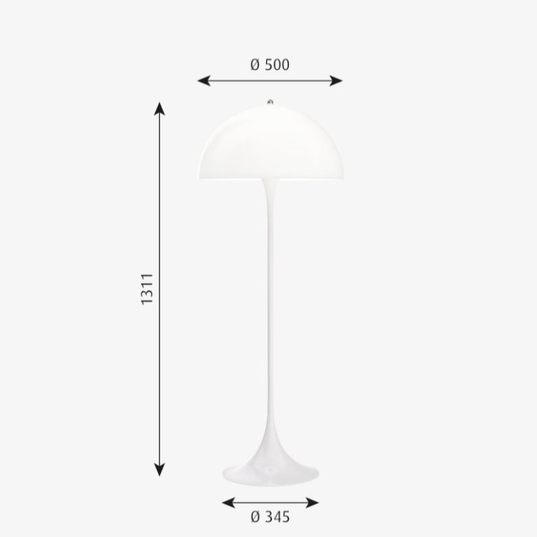 Material: Shade in white opal acrylic. Stem in white lacquered steel. Base and top in white plastic. Cord length: 2.5 m Switch: On the cord. Cord type: White plastic with plug.