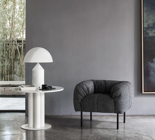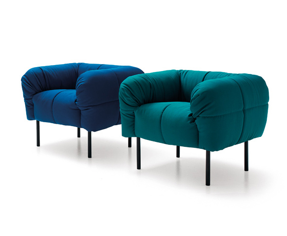 From the evolution of sofa Strips, we have “Pecorelle”, a version consisting of armchair and small sofa,where the body is positioned on thin black legs, that remember exactly the sheep. Arch. Cini Boeri tells that she was inspired by the works of Christo Vladimirov Javasev and Jeanne-Claude. Denat de Guillebon, masters in the the art of landscape painting. Nature prevails and becomes the inspiring muse of this new piece of design. “ Pecorelle have grown up and they have sailed for America! A nice record for some sheep……..world’s changing!” Cini Boeri 2010