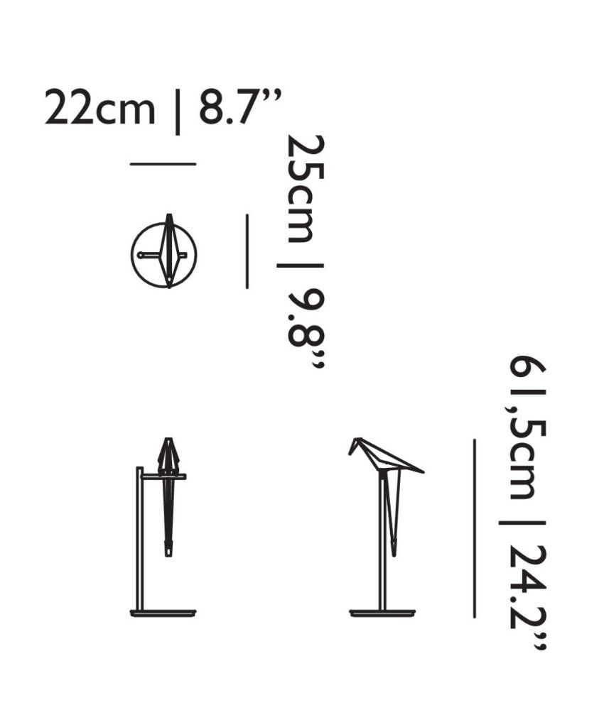 The Perch Light Table Lamp, the smallest of its family, holds its own particular charm. You may admire the details of its delicate beauty and follow the light swinging of the bird from nearby, while comfortably seated. What’s more, you can easily set it in motion with a gentle touch of your hand while enjoying its warm sunny glow.