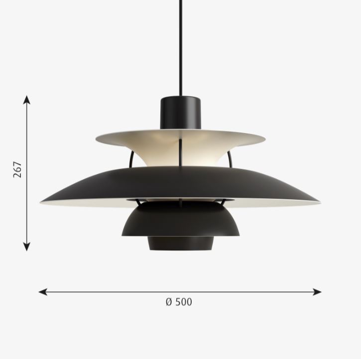 The fixture provides a comfortable, glare-free light, based on the principle of Poul Henningsen’s reflective three-shade system, which directs the majority of the light downwards. It emits a lateral light as well as illuminating itself, providing a soft radiance from within its core. The lower shade is furthermore fitted with a frosted diffuser glass to ensure that the downward directed light is 100% glare-free.