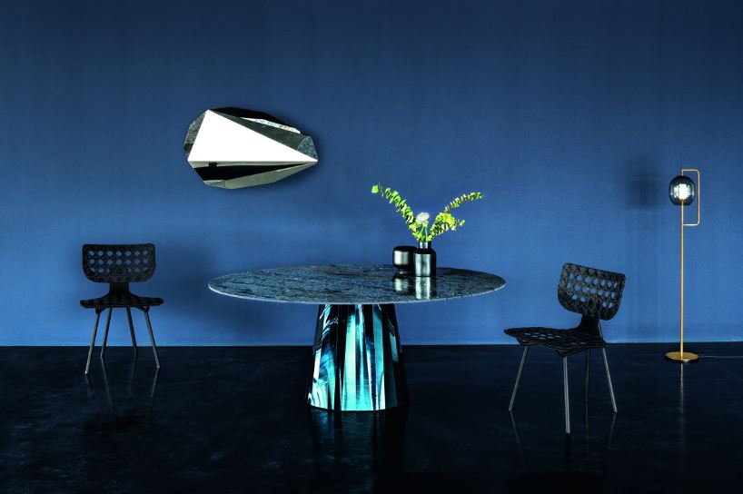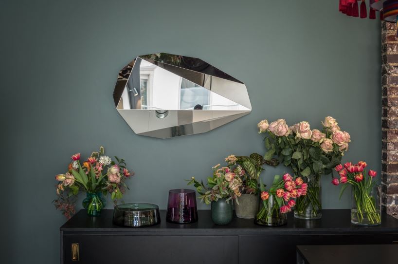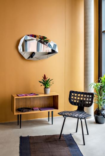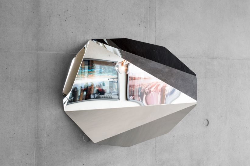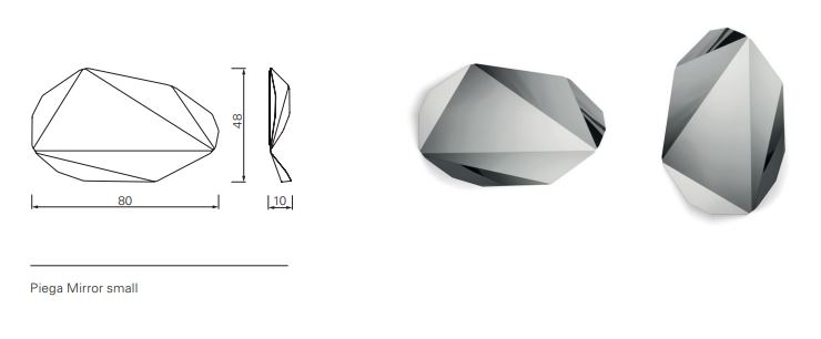 With her Piega Mirror, French designer Victoria Wilmotte brings an object of unusual crystalline elegance and astonishing geometry to living environments. The mirror-polished stainless steel makes the surface of the object look like transparent mirrored surfaces. The bends and folds that gave Piega its name create a fascinating play with the refraction of light and colour reflections in any room. With its three-dimensional structure, the mirror thus becomes a vivid object.