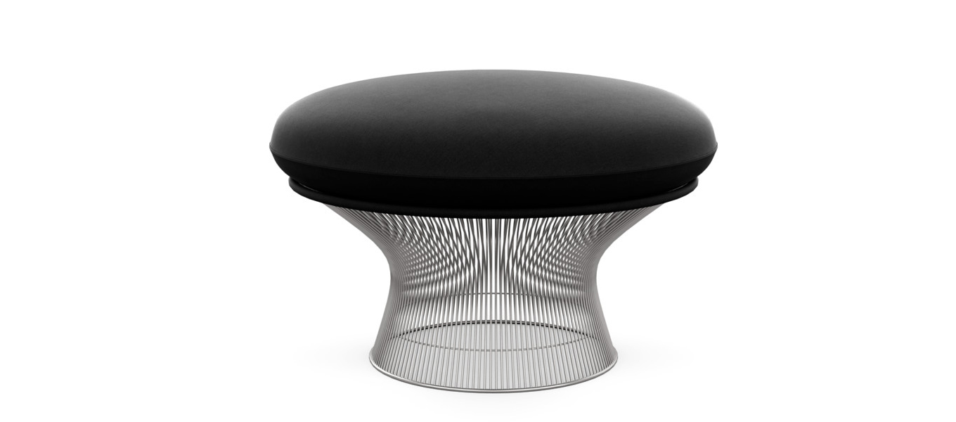 In 1966 the Platner Collection captured the “decorative, gentle, graceful” shapes that were beginning to infiltrate the modern vocabulary. The pieces are created by welding hundreds of curved steel rods to circular frames, simultaneously serving as structure and ornament.