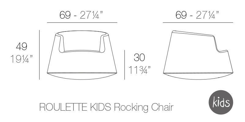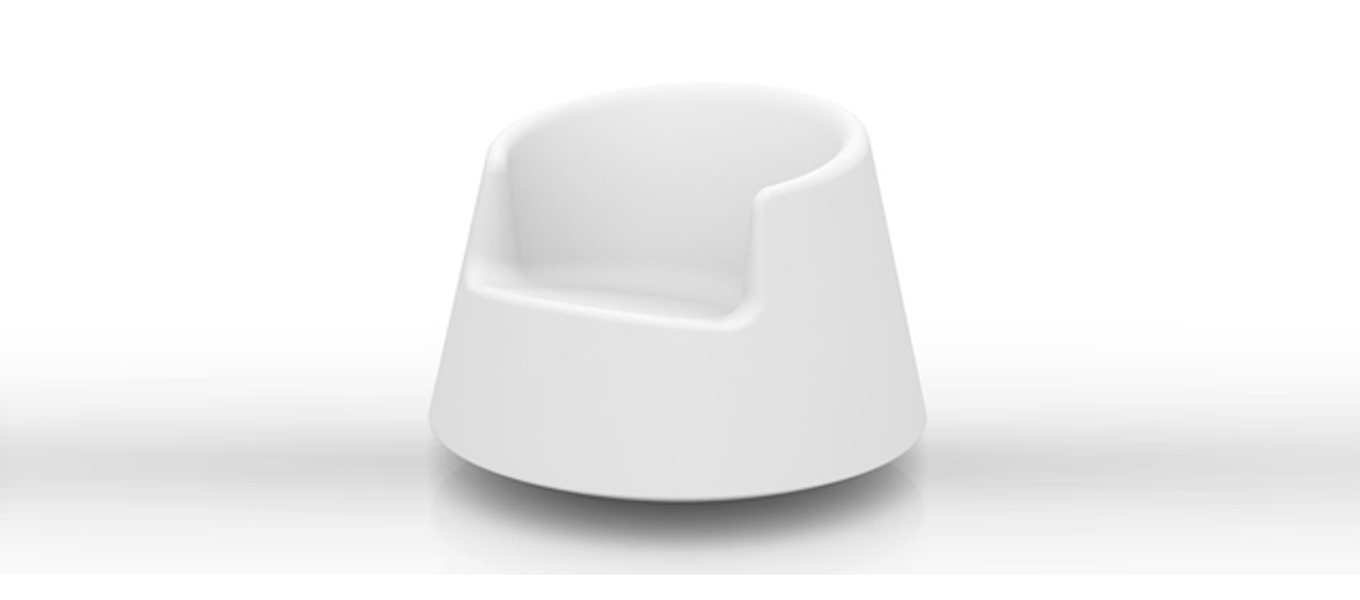 As Eero says, for all designers, the most common, interesting, and difficult object to design is a chair. Chairs for the home usually have four legs, stools have three, and office chairs have two or only one leg. Many plastic chairs don’t have legs at all instead the body of the chair becomes the leg as well. When Eero started designing a chair for VONDOM, he had this concept of the leg being a part of the body of the chair in mind, and he also wanted to see what new could be accomplished with a rotation mold technique in chair design. Because he has always been fond of rocking chairs and the round, rocking shape is easy to achieve with the rotation mold, he ended up with a design that rocks in all directions and also spins due to its contact with the ground at one point. The high armrests give a sense of security when spinning the chair around and also provide good support while sitting. He wanted to find an international name for the chair, which also would immediately give the association for the spinning movement, and that’s why he ended up with the name ”Roulette”.