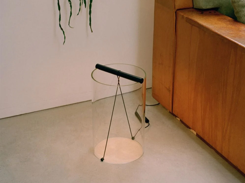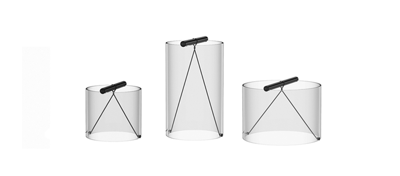 Designed by Guglielmo Poletti Table lamp providing diffused light. Clear glass cylindrical lamp body available in multiple sizes. The handle is made of aluminum and also acts as a light emitter. Multi-led diffuser in specially designed white polycarbonate to avoid the Multi Shadow effect and dazzle. High efficiency LED source with a lifetime of more than 50.000 hours. Electric cable of useful length 180 cm, covered in black fabric and equipped with dimmer switch for ON/OFF and adjustment of the light flow between 10-100%. Plug-in power supply with interchangeable plugs. To-Tie is a future-proof lamp as no glue is used to assemble its different parts. The product can therefore be separated, replaced individually, and recycled separately.