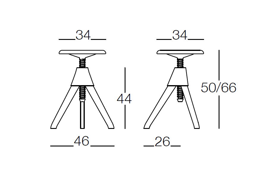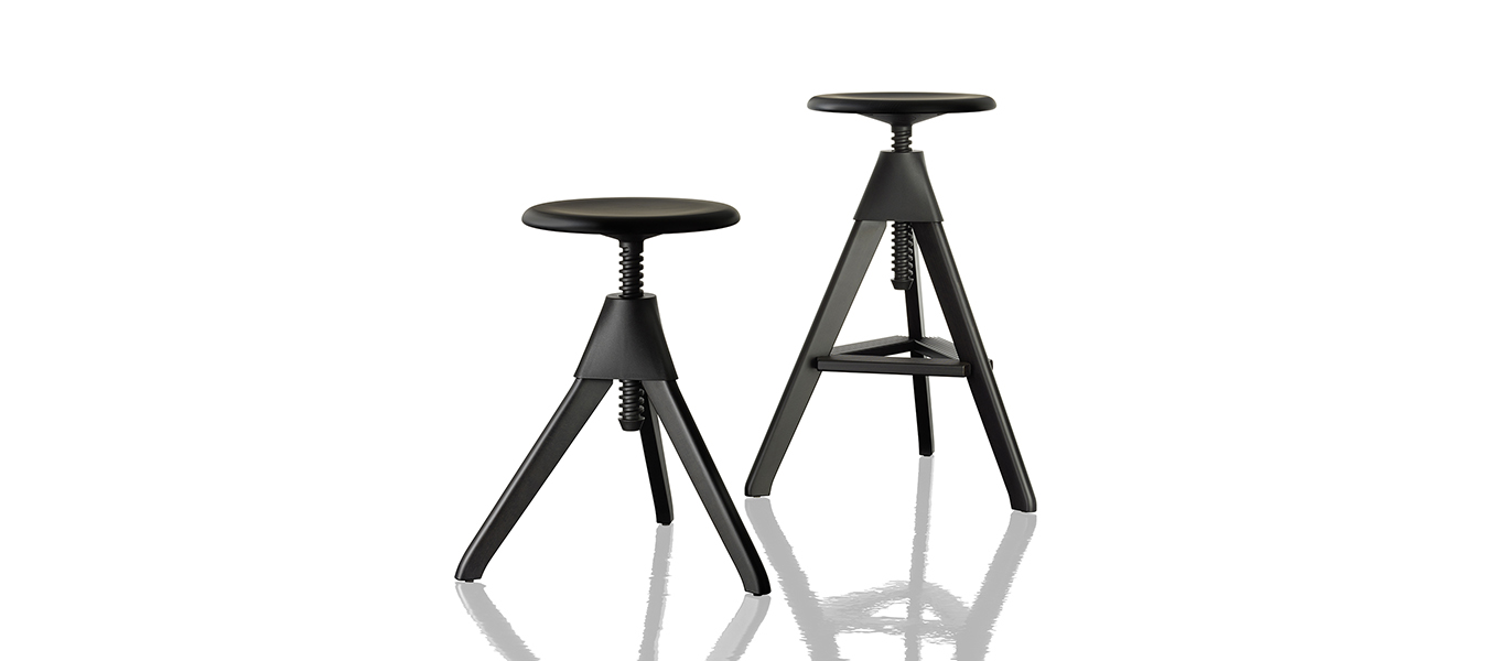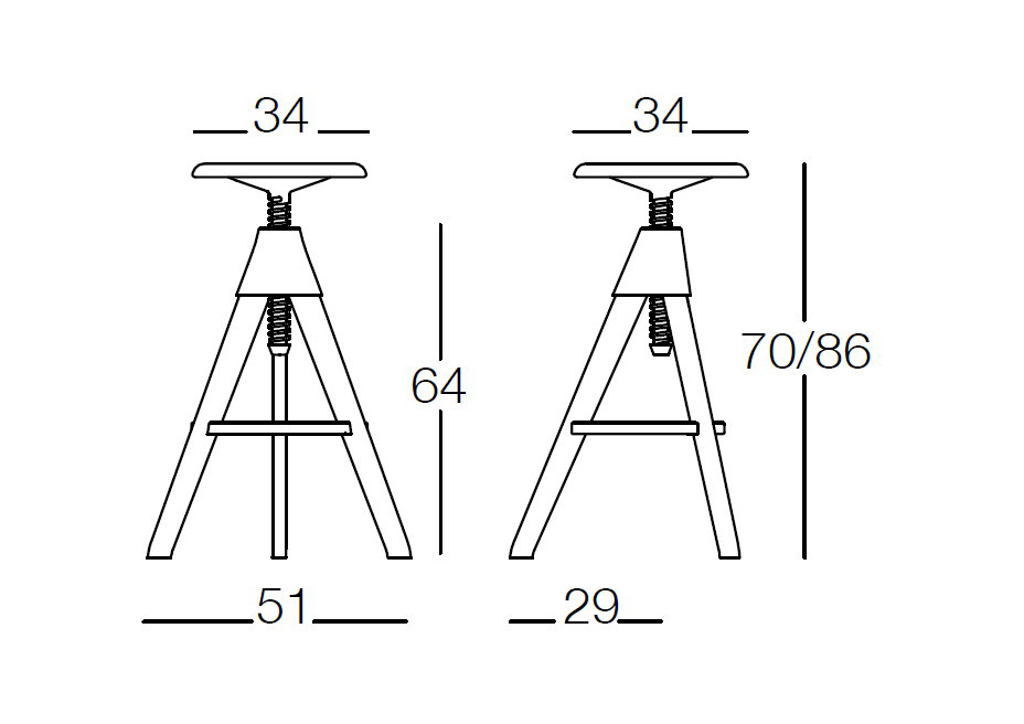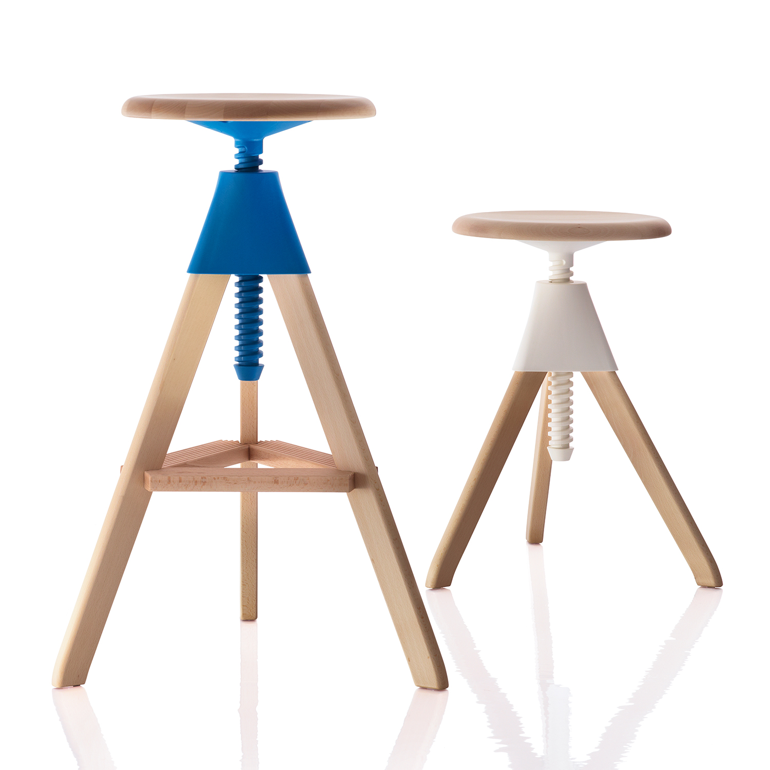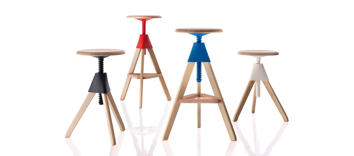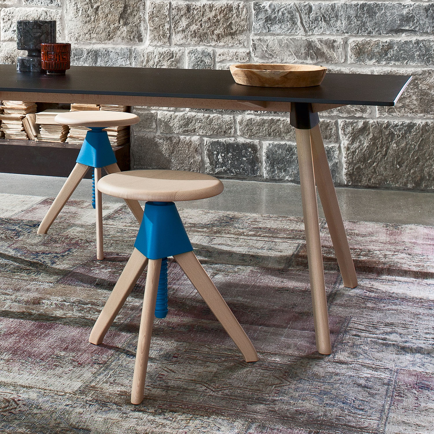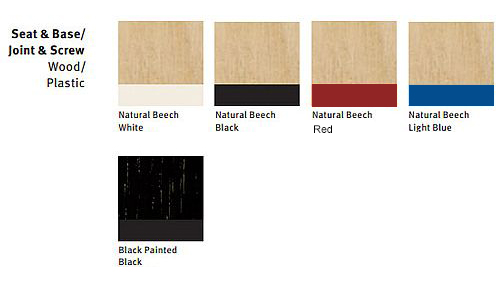 Adjustable in height. Material: frame in solid beech natural or painted; joint and screw in polypropylene with glass fibre added.