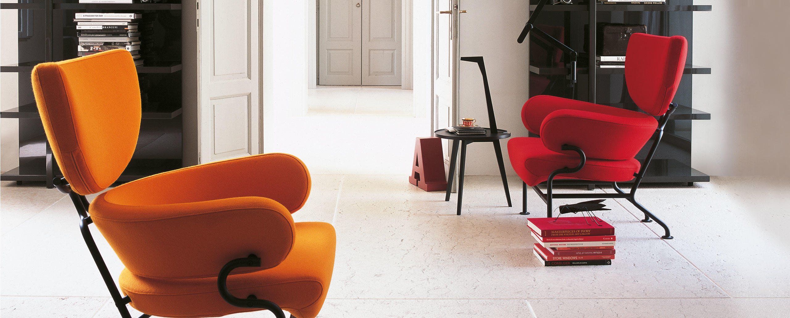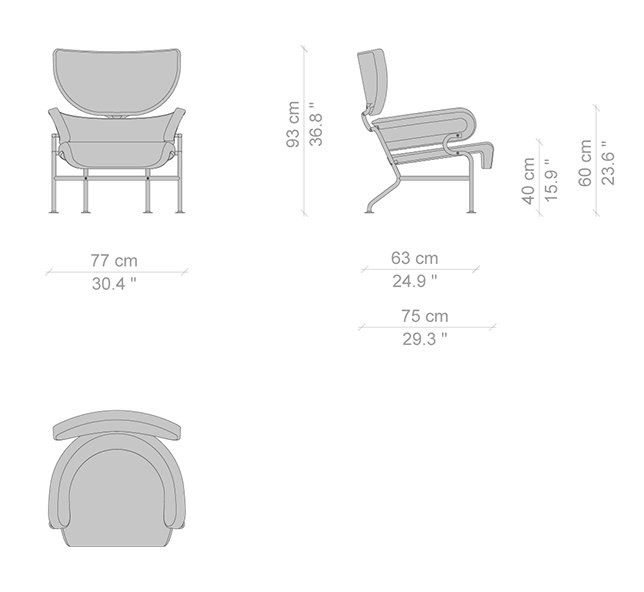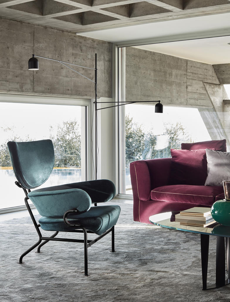In 1952, working with Franca Helg, his long-time assistant, Franco Albini designed Tre Pezzi, a contemporary restatement of the classic bergère chair. The chair is composed of a deep curved seat, a ring-shaped back rest and a half-moon head-rest, each of these geometric shapes standing out independently. Wide and welcoming, the upholstered sections combine clean-cut lines with total comfort. The tubular metal frame is cued on scaffolding poles, while the sideways curve of the armrests recalls the handrails on the Milan underground system, which were also the work of Albini and Helg. The outcome is an up-to-the-minute armchair with a strong visual impact revisited by Cassina in the utmost respect for the original.