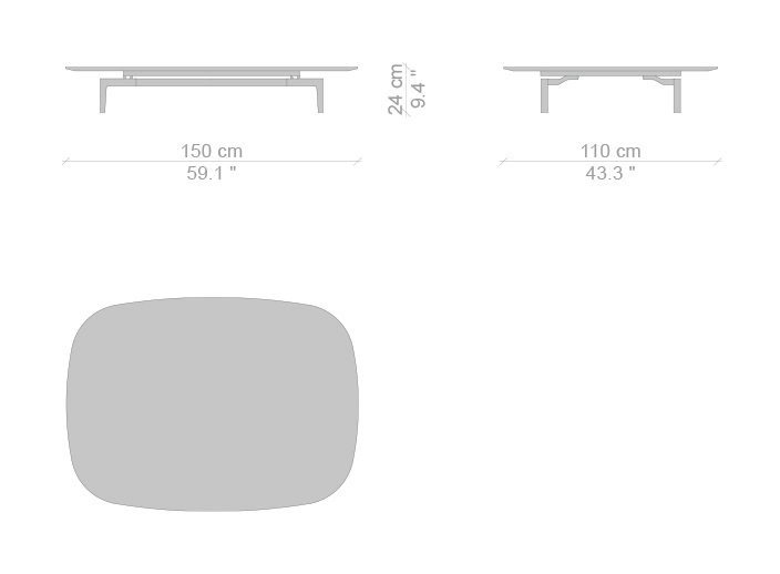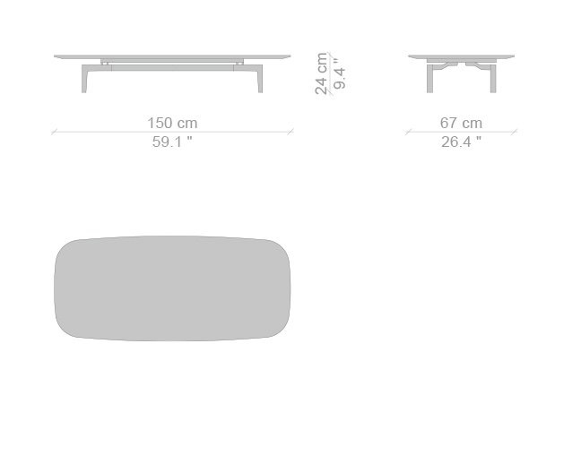 A collection of versatile low tables, available in two rectangular sizes. The edges are rounded, and the tops are supplied with either a single, or double, top, the lower of the two serving as a shelf for magazines or small objects.