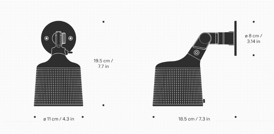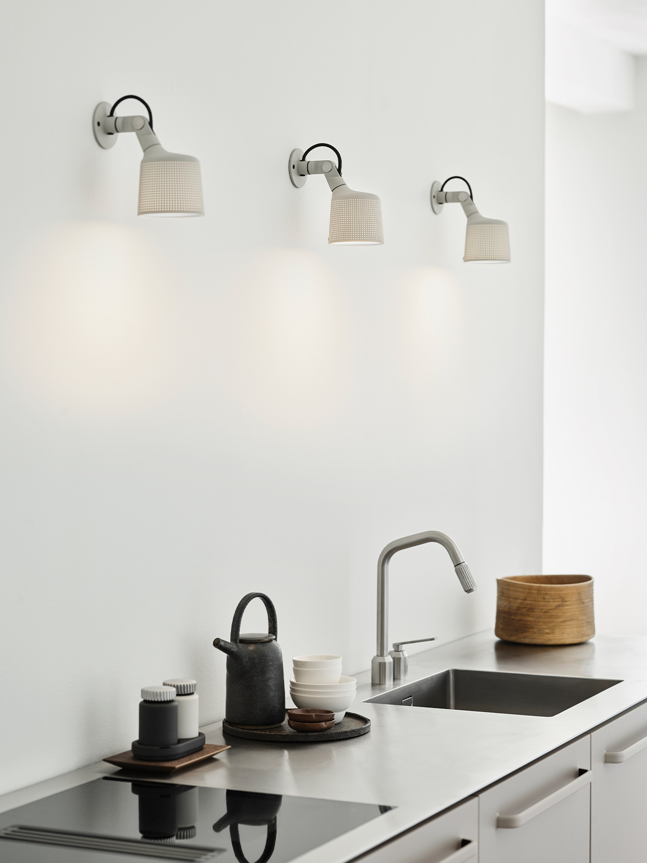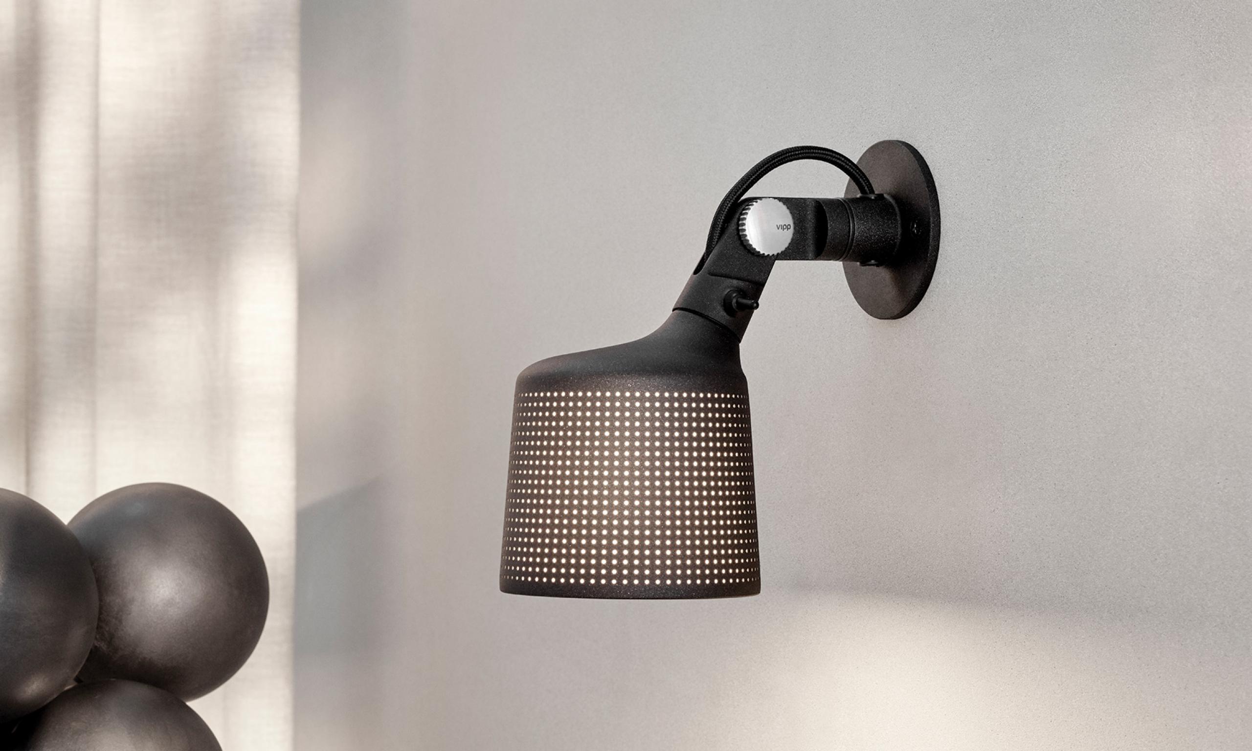 The Vipp wall spot is a versatile wall light for the bathroom, hallway, kitchen or living room. The wall spot has a perforated shade for a pleasant diffusion of light.