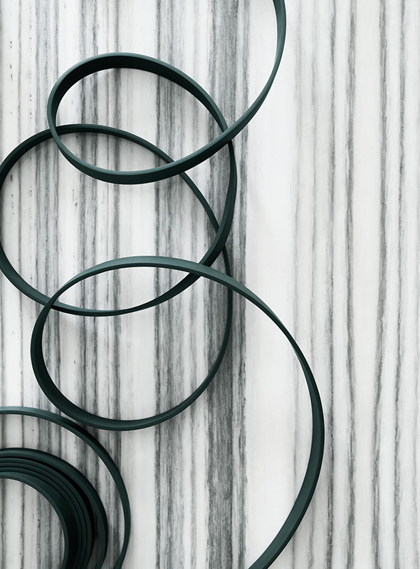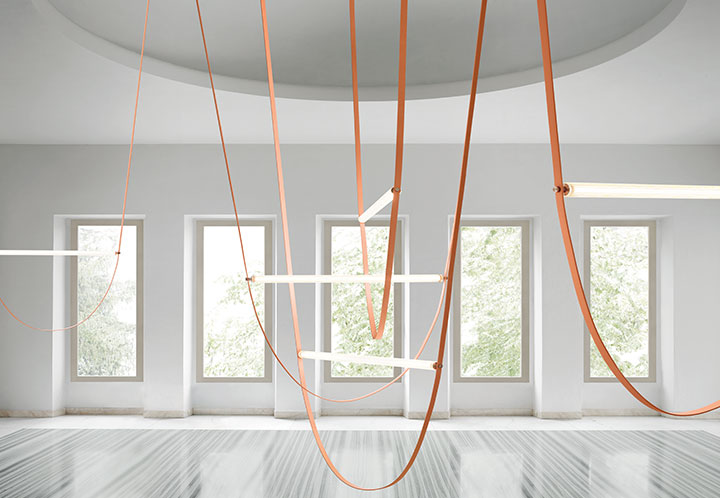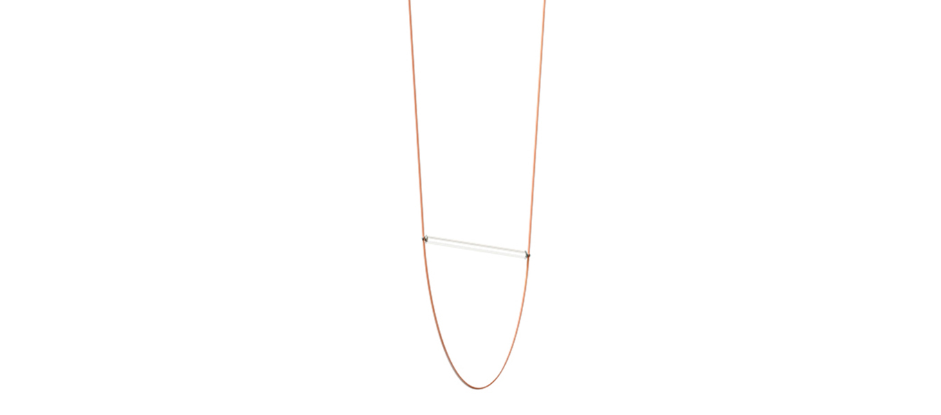 Suspension lamp with diffused light. Tubular in transparent extruded glass and internal diffuser in opal PC. Ferrules made with CNC technology in satin stainless steel. Extruded cable in pink and forest green rubber. Injection molded PC rosette in the same finishes as the cable. The electronics integrated in the ceiling rose allows the use of different dimerization systems: push, 1-10, potentiometer, DALI. In the absence of these systems, the luminous flux can be set during installation, with the push system included in the canopy. Useful length of the cable 3mt.