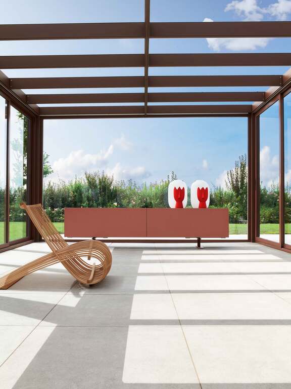 Wooden Chair is a modern, innovative seat, yet it is also warm, cosy and comfortable. The structure, made of oiled natural solid beech wood, is fluid and continuous, almost organic. The beech wood planks, bent with hot steam to form a double curve, are supported by two horizontal reinforcements: 2 at the ends and 3 in the seat area, all fastened with visible screws.